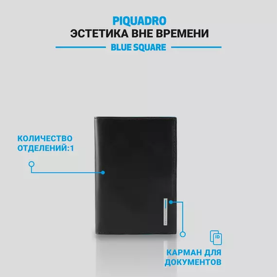 Обложка для паспорта Piquadro Blue Square черный натур.кожа [PP5255B2/N]
