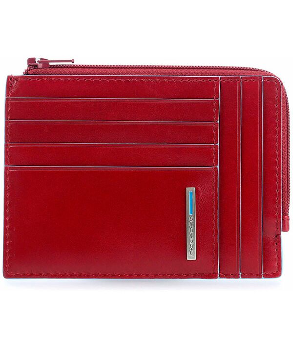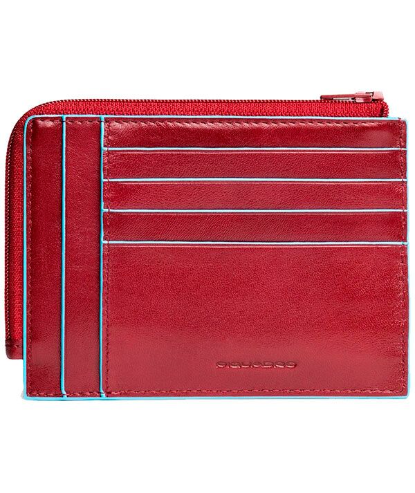 Чехол для кредитных карт с отделением для монет перегородкой для документов и от компании Piquadro, коллекция Blue Square. Натуральная телячья кожа красного цвета. Оторочка по канту - голубым. Отделение для монет на молнии. Фирменная упаковка.