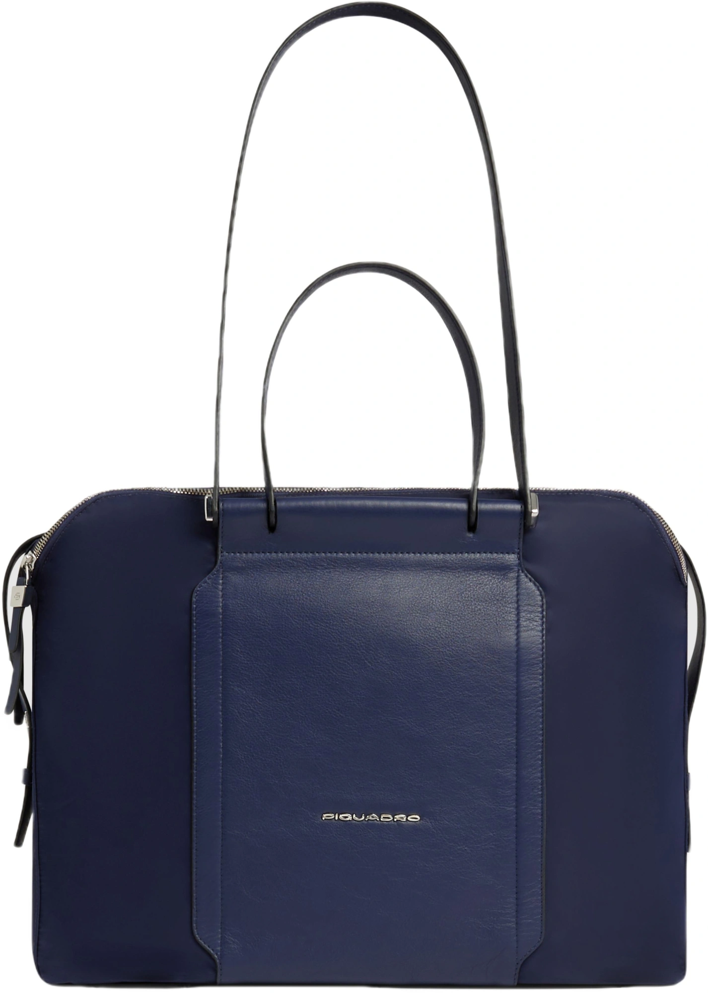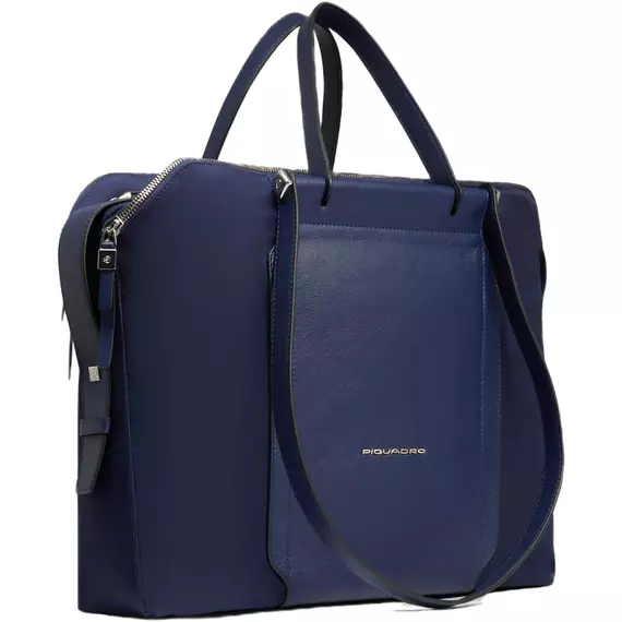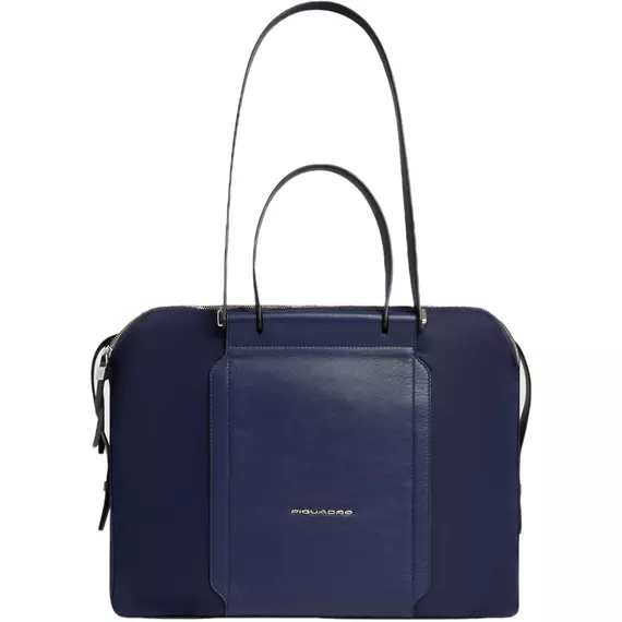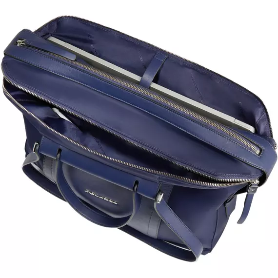 Деловая сумка женская Piquadro Lyra BD4574W92T/BLU с отделением для ноутбука 14" темно-синяя нейлон/натур.кожа