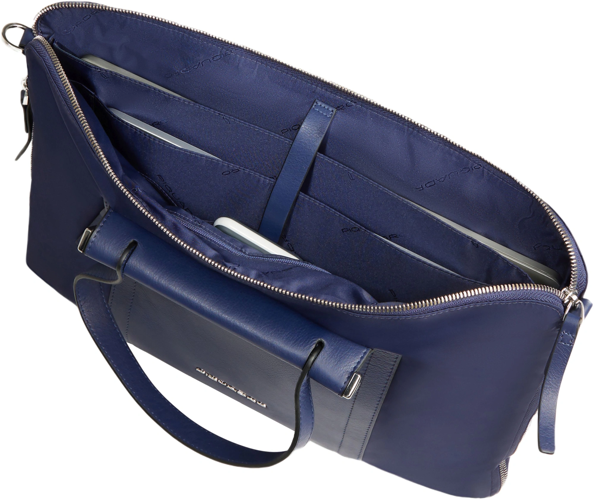 Деловая сумка женская Piquadro Lyra с отделением для ноутбука 15.6" темно-синяя нейлон/натур.кожа [CA4021W92T/BLU]