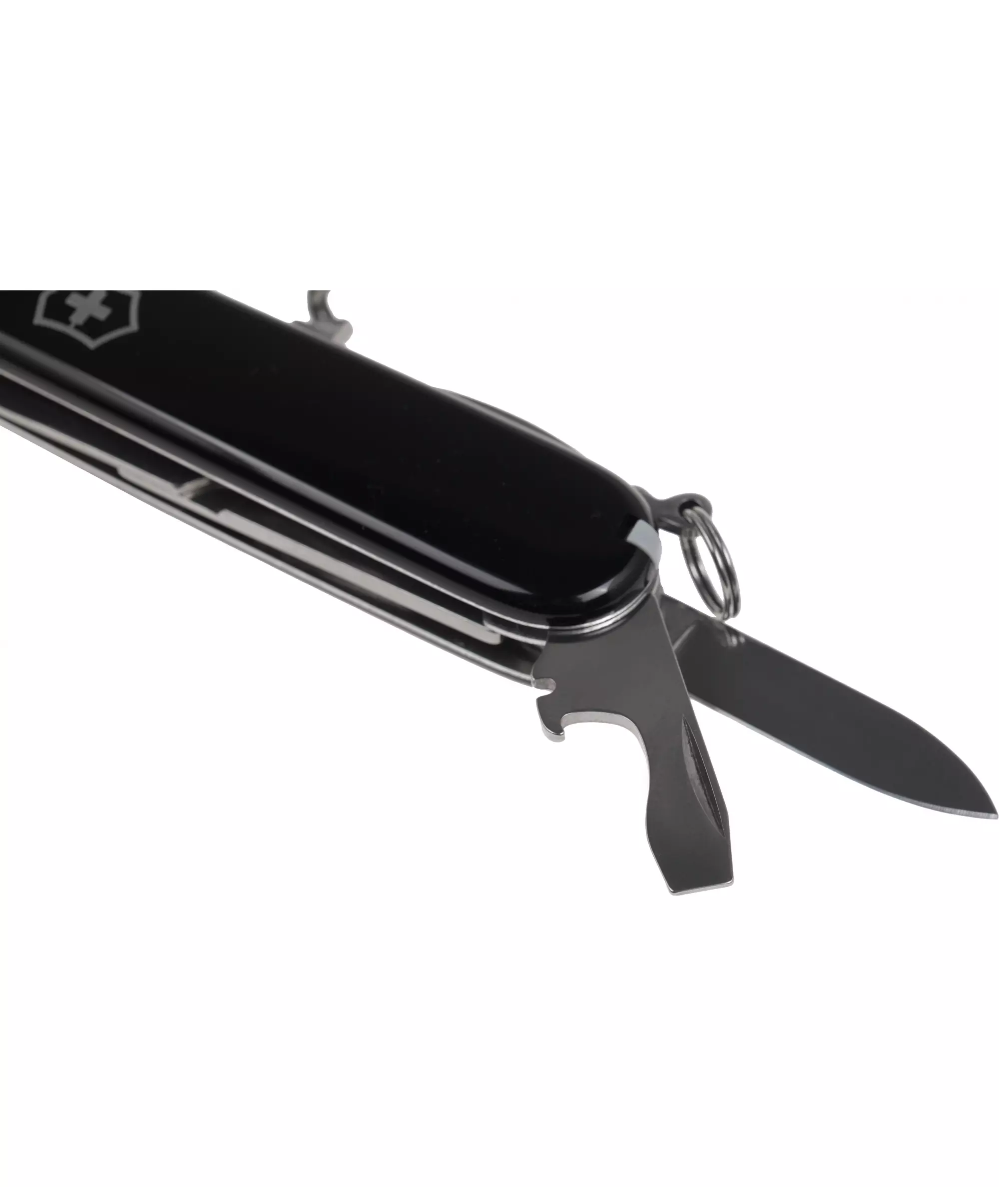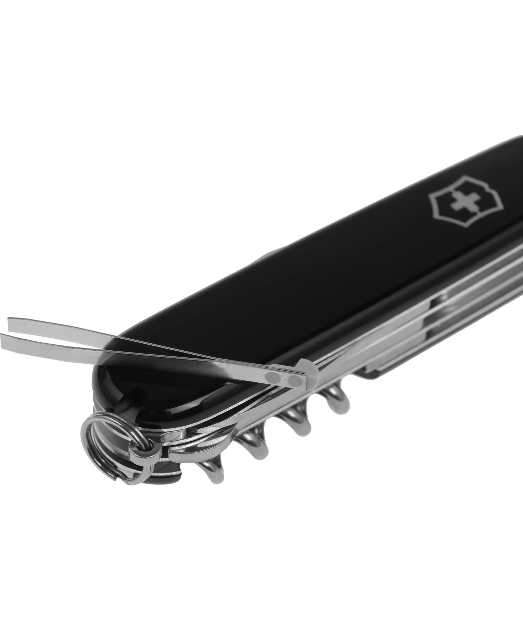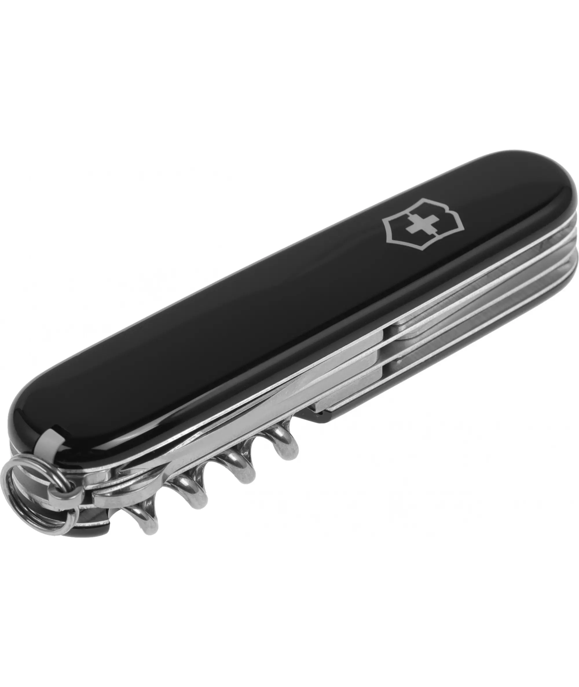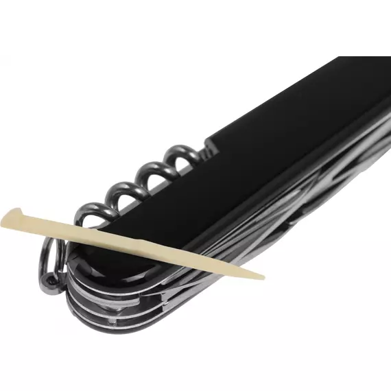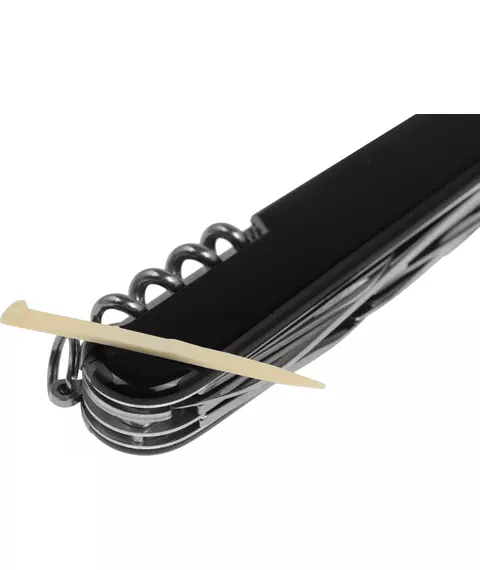 | Список функций | Нержавеющая сталь.Большое лезвие, малое лезвие, штопор, консервный нож с малой отверткой (также для винта с крестообразным шлицем), открывалка для бутылок с отверткой и инструментом для снятия изоляции, шило, кернер, кольцо для ключей, пинцет, зубочистка, ножницы, многофункциональный крючок. |