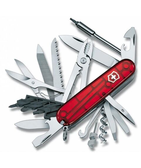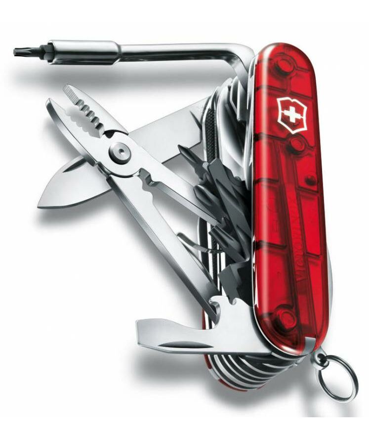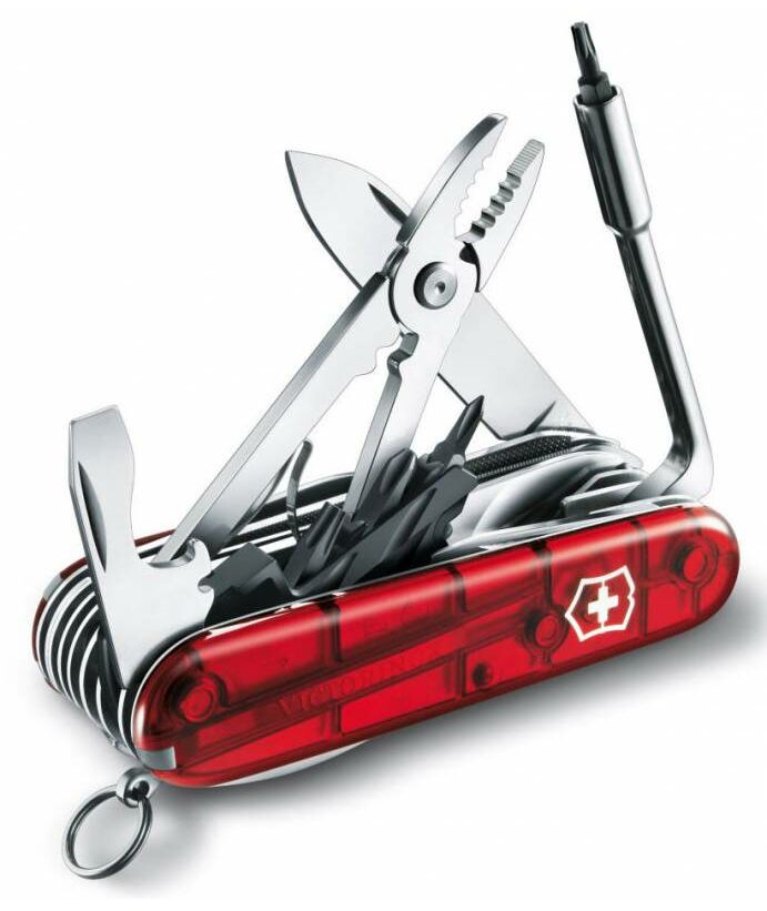 Складной швейцарский нож Victorinox CyberTool 41 - это многофункциональный инструмент (мультитул) с прозрачной красной рукоятью; помещается в кармане, содержит 30 элеметов и выполняет 41 функцию.