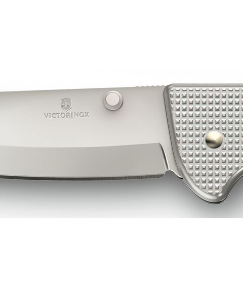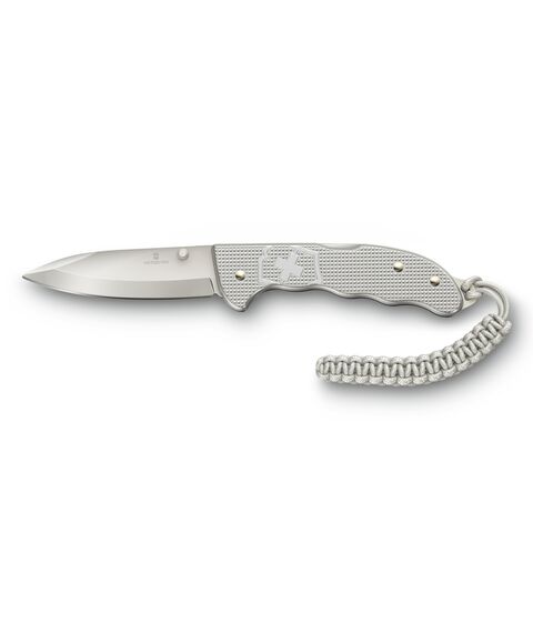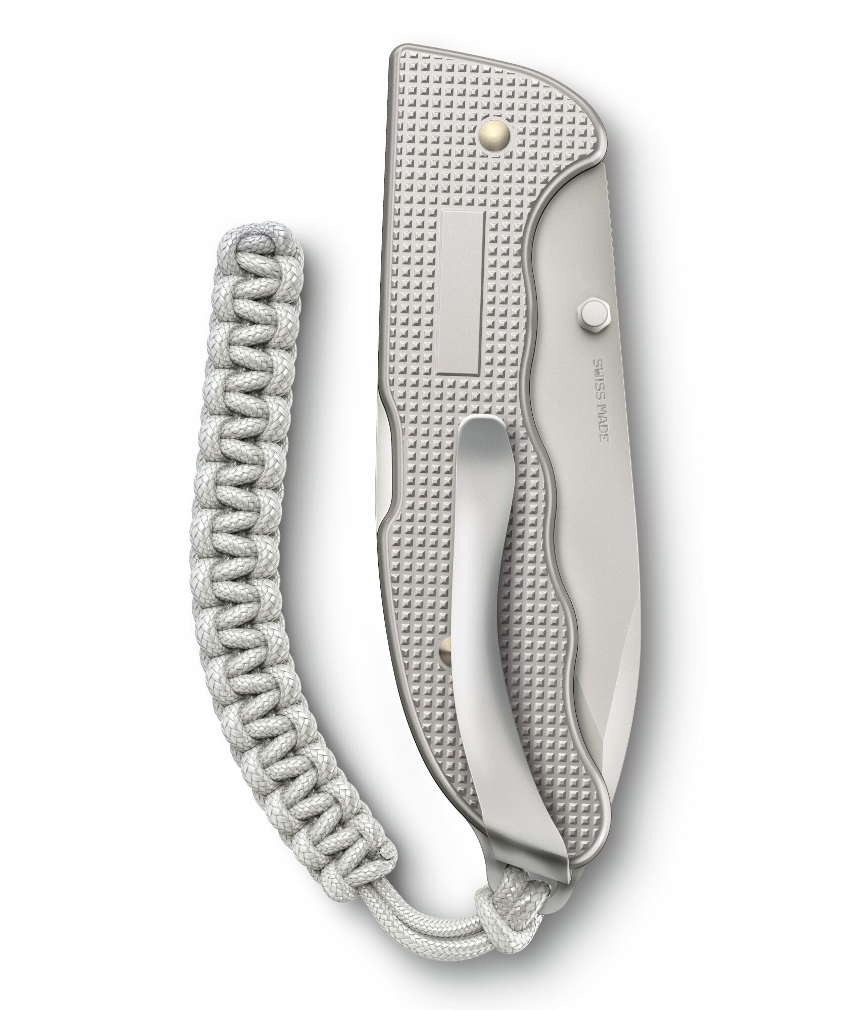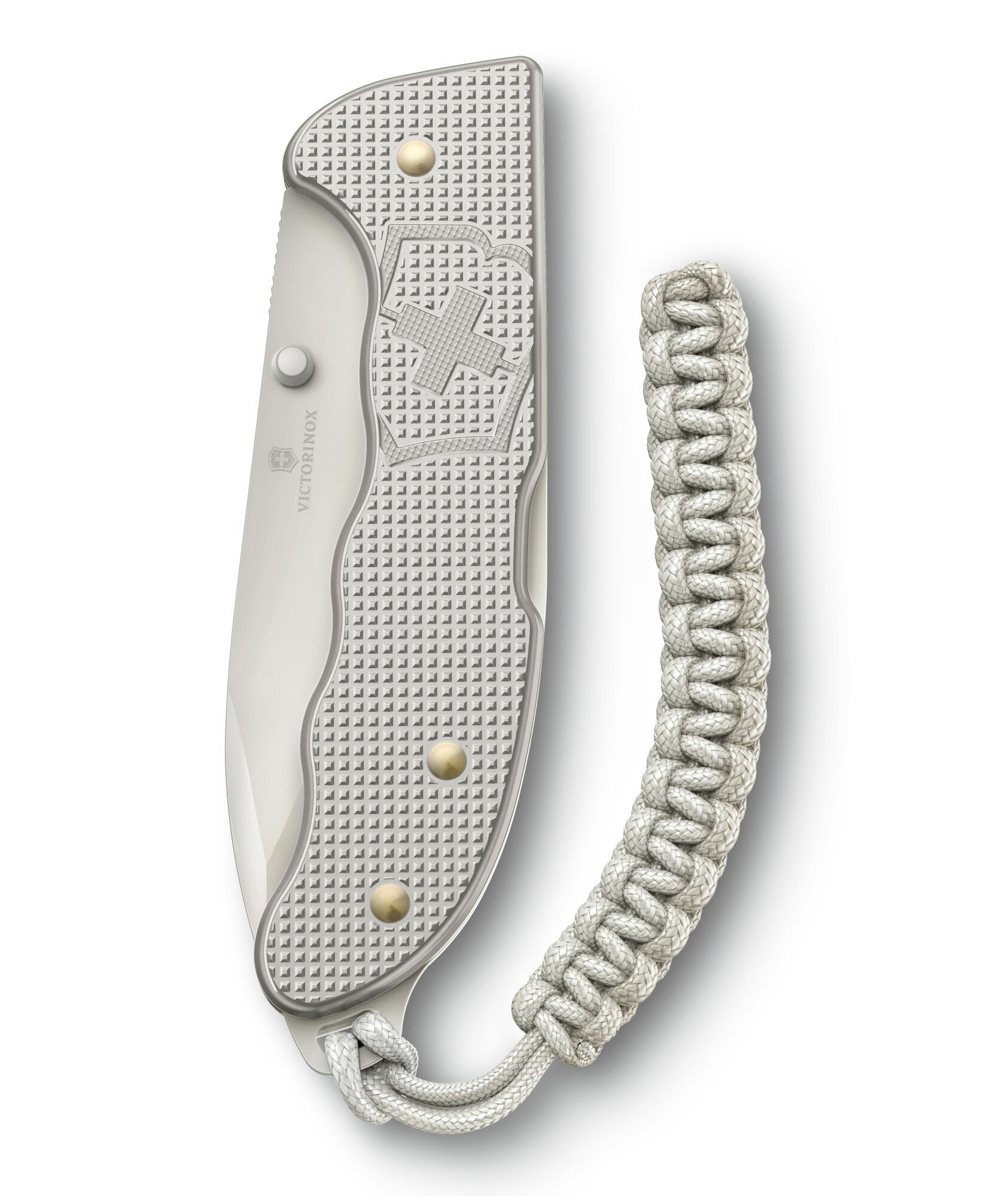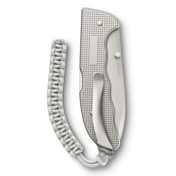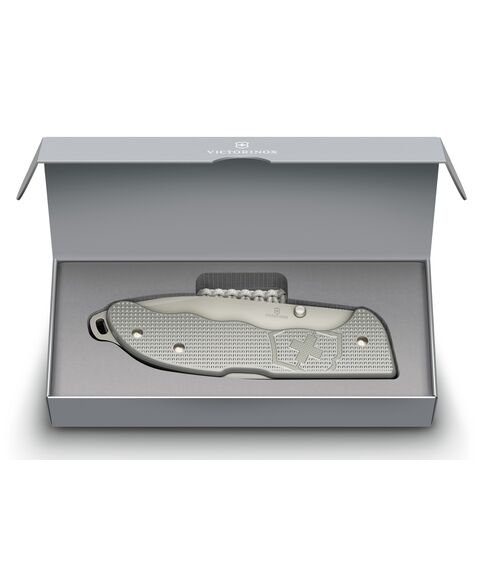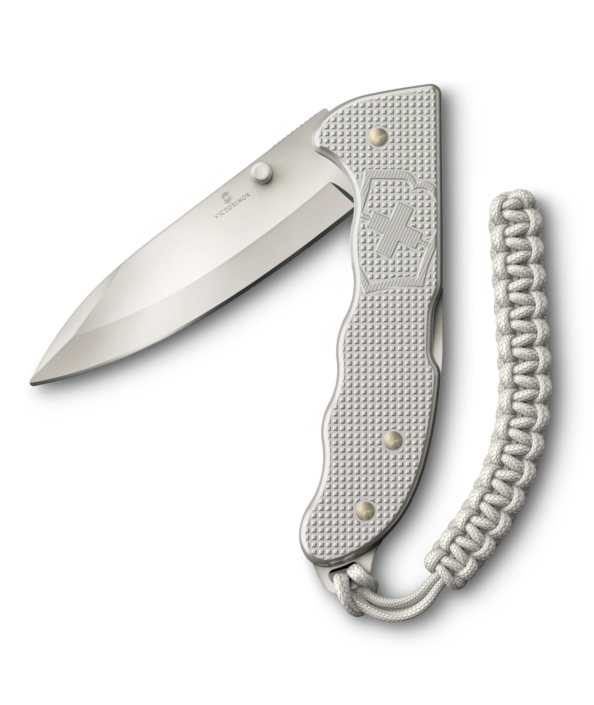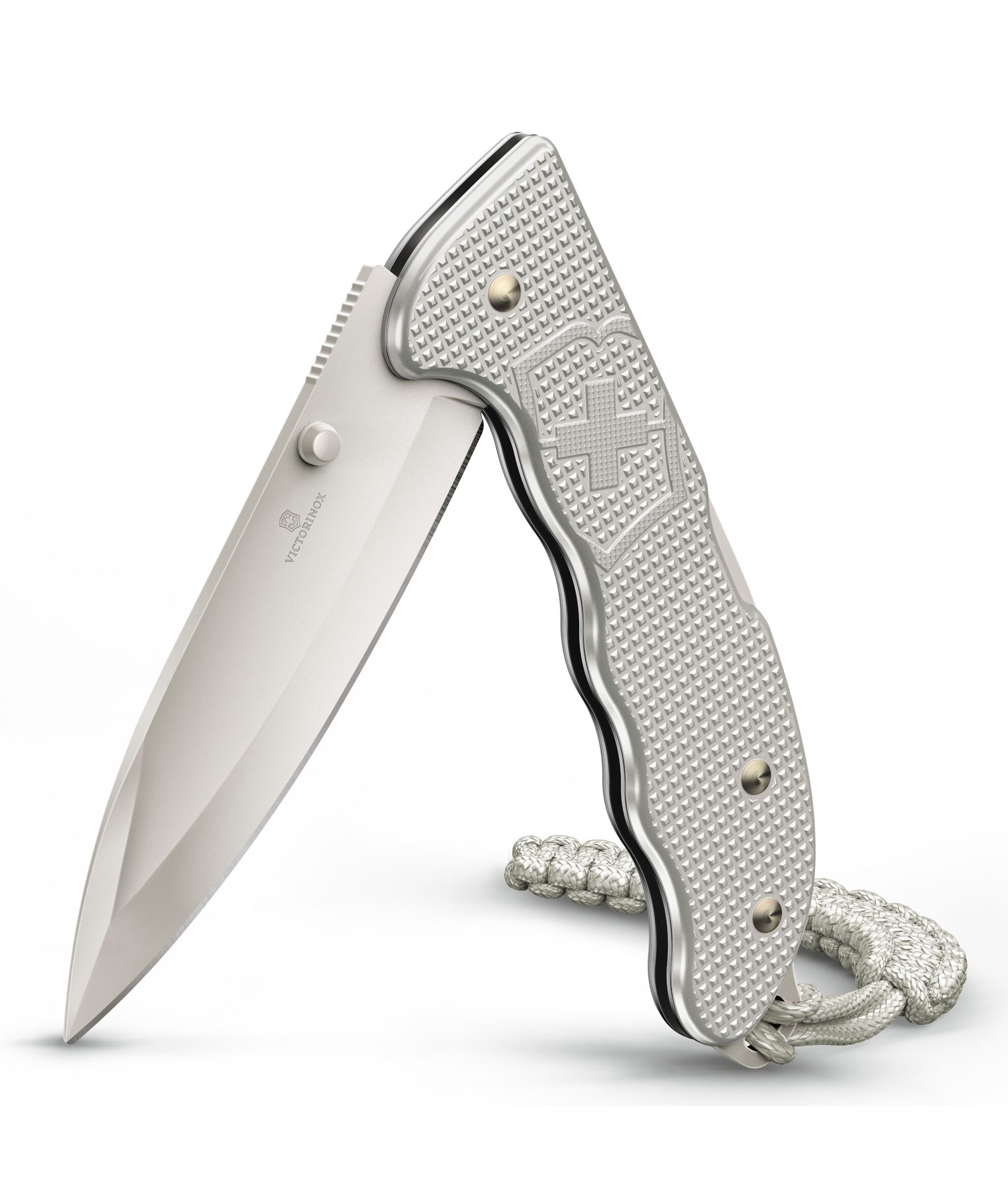 Victorinox Evoke Alox — складной нож, выпущенный в продолжение линейки Victorinox Hunter Pro. Evoke стал более удобным и функциональным, чем его предшественник. Клинок формы drop-point выполнен из устойчивой к коррозии стали, на его поверхность нанесено серое матовое покрытие.Нержавеющая сталь.