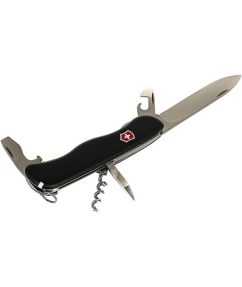 | Список функций | Большое фиксирующееся лезвие, штопор, консервный нож с малой отверткой, открывалка для бутылок с отверткой и инструментом для снятия изоляции, шило, кернер, кольцо для ключей, пинцет, зубочистка. |