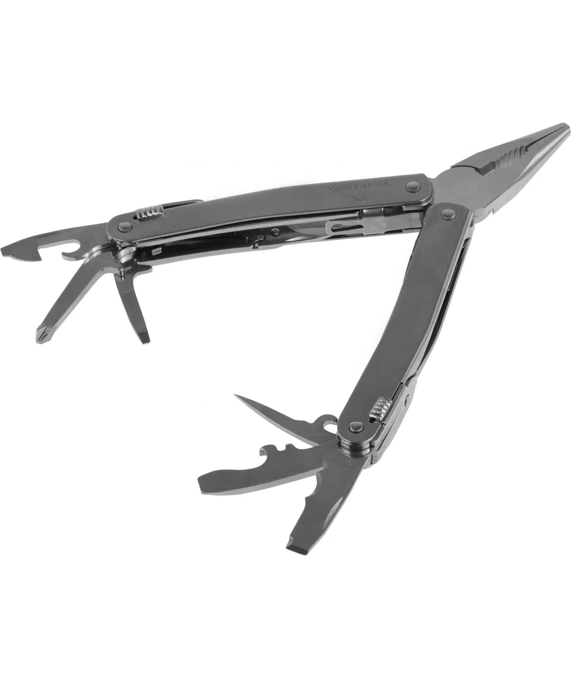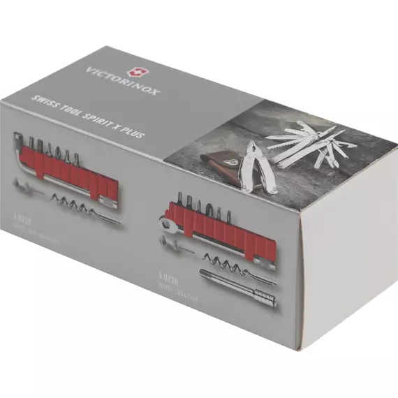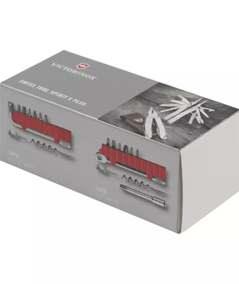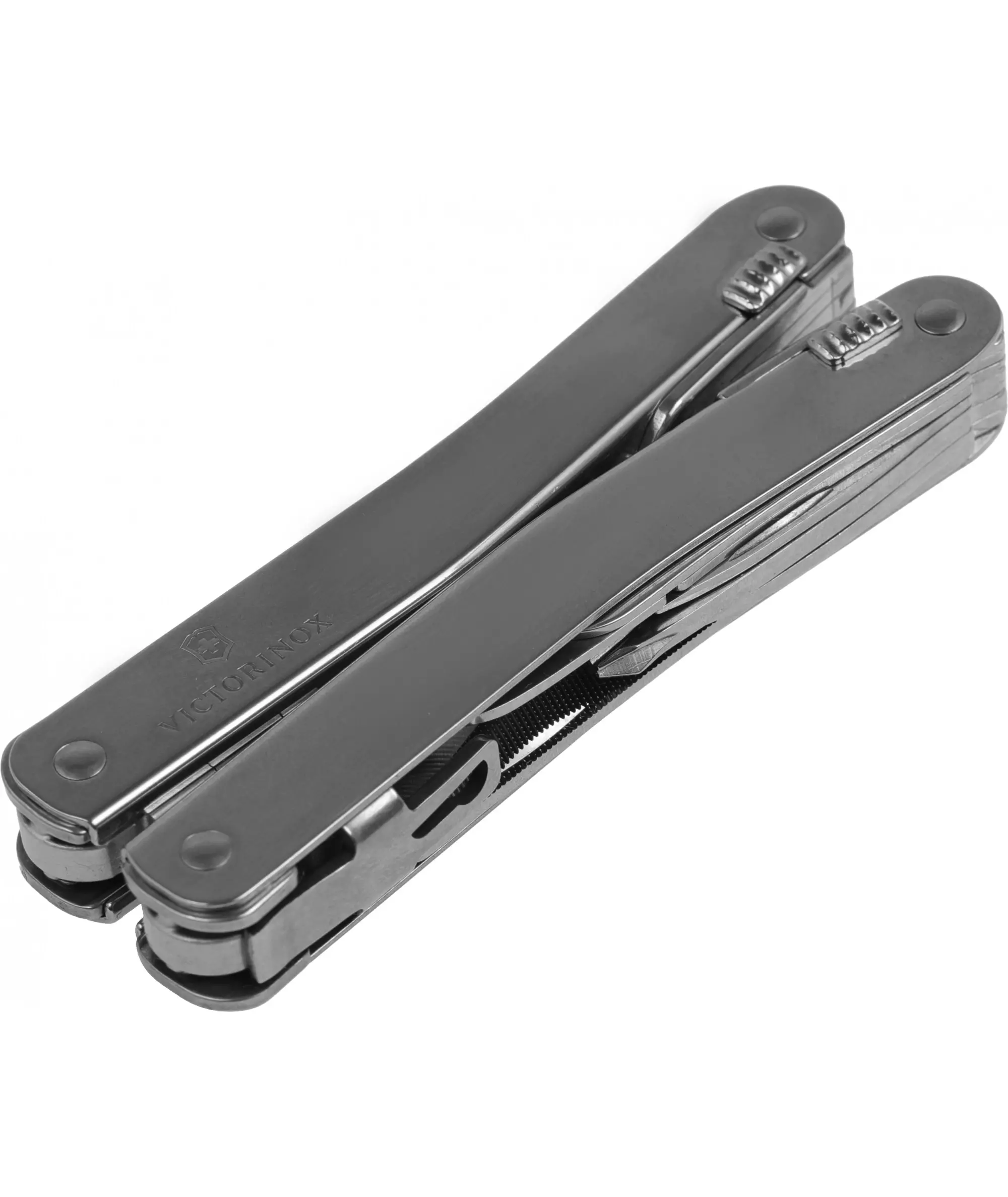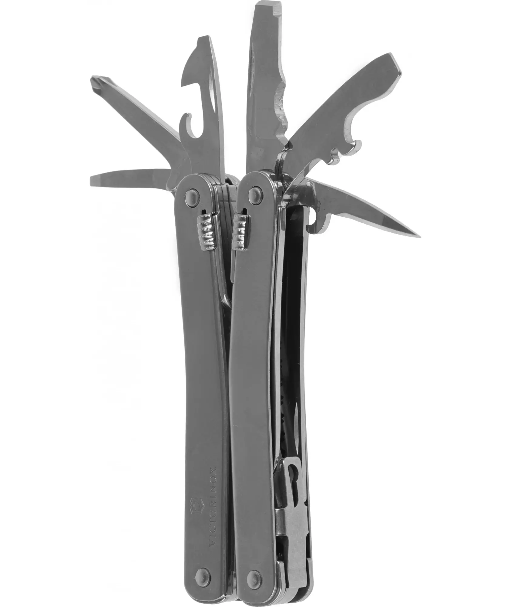 Мультитул VICTORINOX SwissTool Spirit X Plus 35 функций: острогубцы с: кусачками для тонк. и мяг.проволоки твердостью до 40 HRC, кусачками для твердой проволоки, отвертка 2 мм., консервный нож с: отверткой 3 мм., открывалка для бутылок с: отверткой 6 мм., фомкой, инструментом для сгибания проволоки.