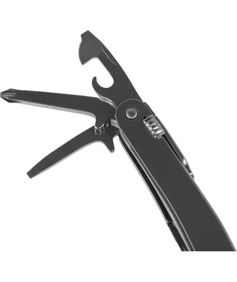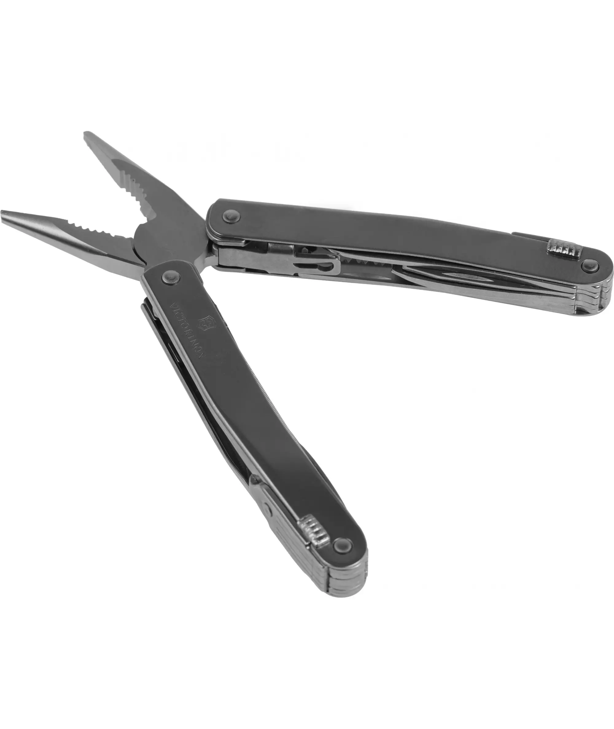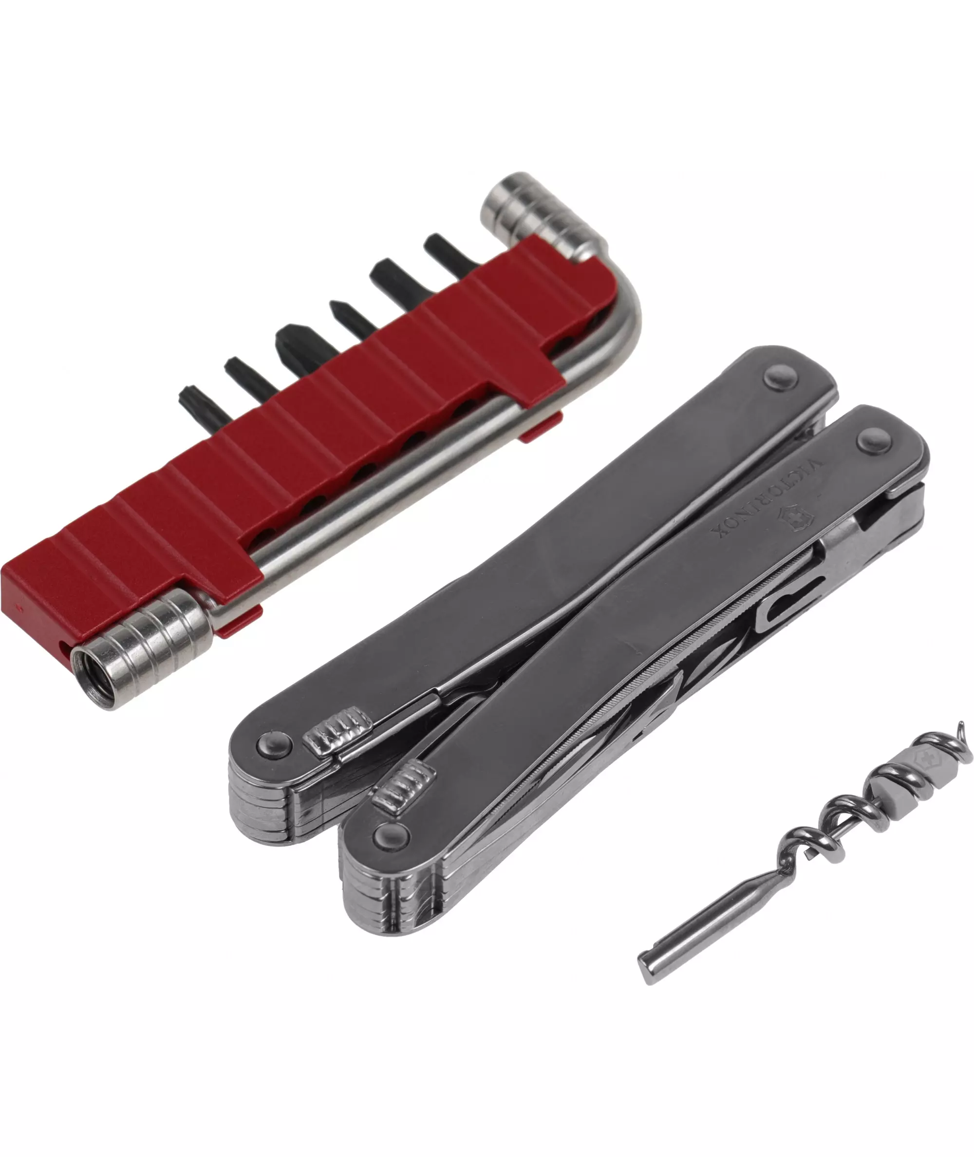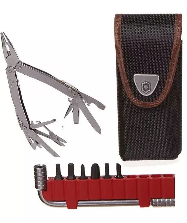 Мультитул VICTORINOX SwissTool Spirit X Plus 35 функций: острогубцы с: кусачками для тонк. и мяг.проволоки твердостью до 40 HRC, кусачками для твердой проволоки, отвертка 2 мм., консервный нож с: отверткой 3 мм., открывалка для бутылок с: отверткой 6 мм., фомкой, инструментом для сгибания проволоки.