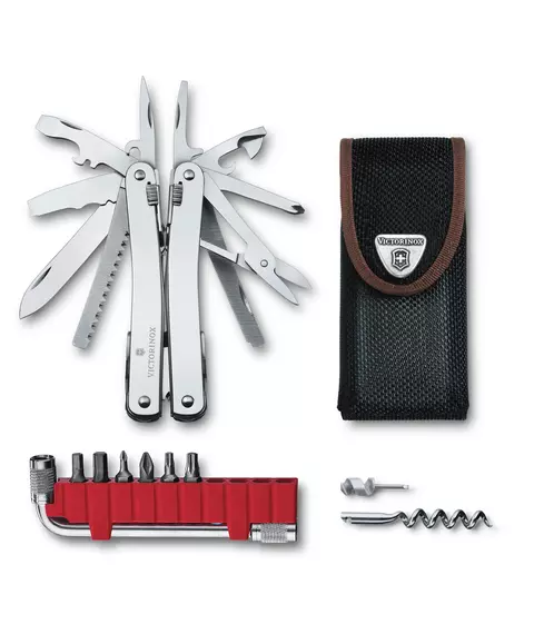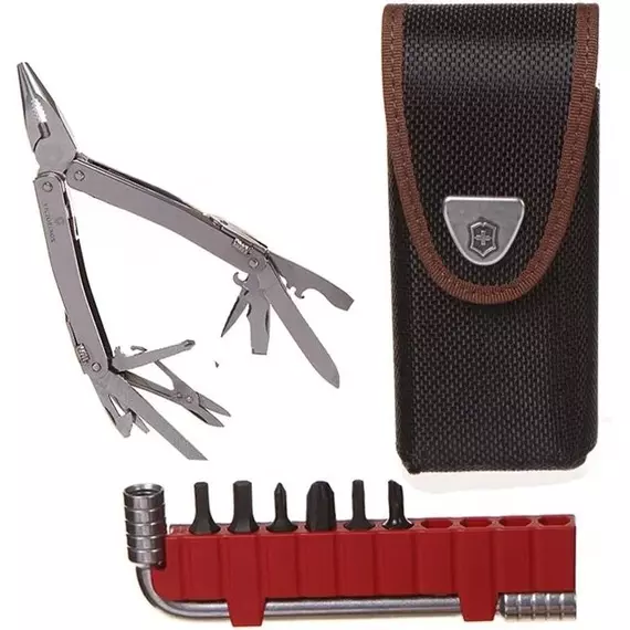 Мультитул Victorinox SwissTool Spirit X 105мм 35функц. мини-отвертка/штопор/набор бит/удлинитель/чехол нейлоновый серебристый подар.коробка [3.0235.N]