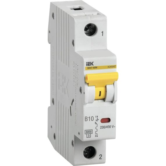 Выключатель автоматический IEK BA47-60M 10A тип B 6kA 1П 230/400В 1мод белый [MVA31-1-010-B]