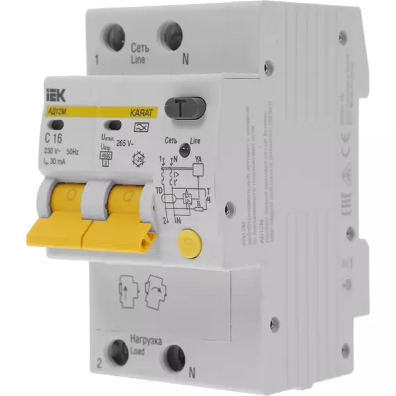 Выключатель IEK MAD12-2-016-C-030 автом. дифф. тока 16A тип C 4.5kA 30мА A 2П 230В 3мод белый