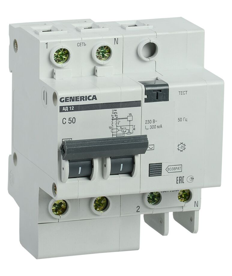 Выключатель автом. дифф. тока IEK MAD15-2-050-C-300 50A тип C 4.5kA 300мА AC 2П 230В 4мод серый