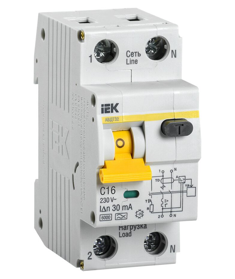 Выключатель IEK MAD22-5-016-C-30 автом. дифф. тока 32 16A тип C 6kA 30мА A 1П+Н 230В 2мод белый