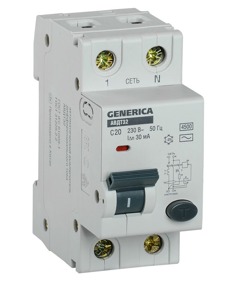 Выключатель автом. дифф. тока IEK MAD25-5-020-C-30 20A тип C 4.5kA 30мА AC 2П 230В 2мод серый