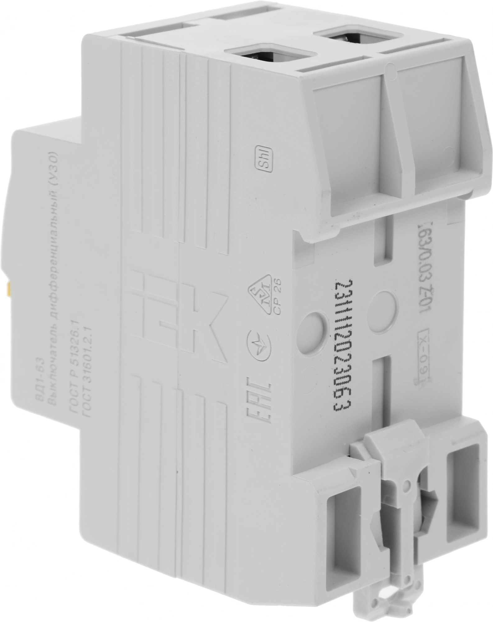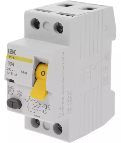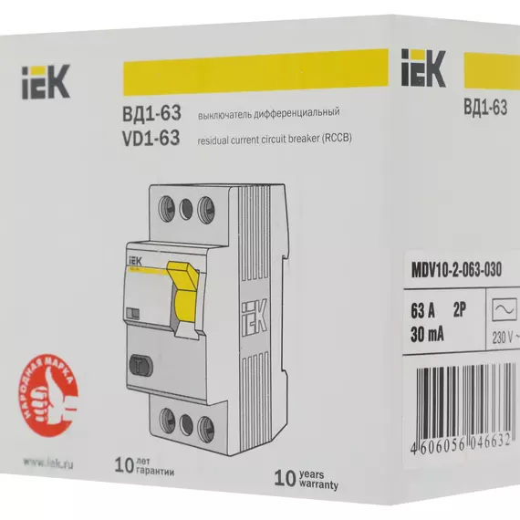 Выключатель дифф.тока IEK MDV10-2-063-030 63A 30мА AC 2П 230В 2мод белый
