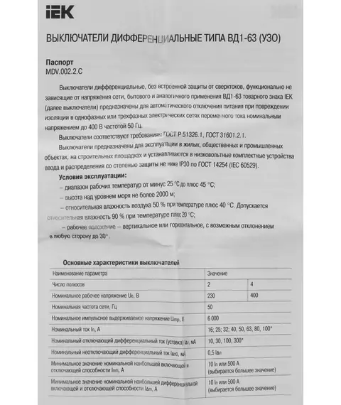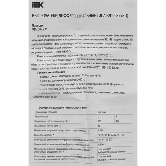 Описание IEK MDV10-2-063-030