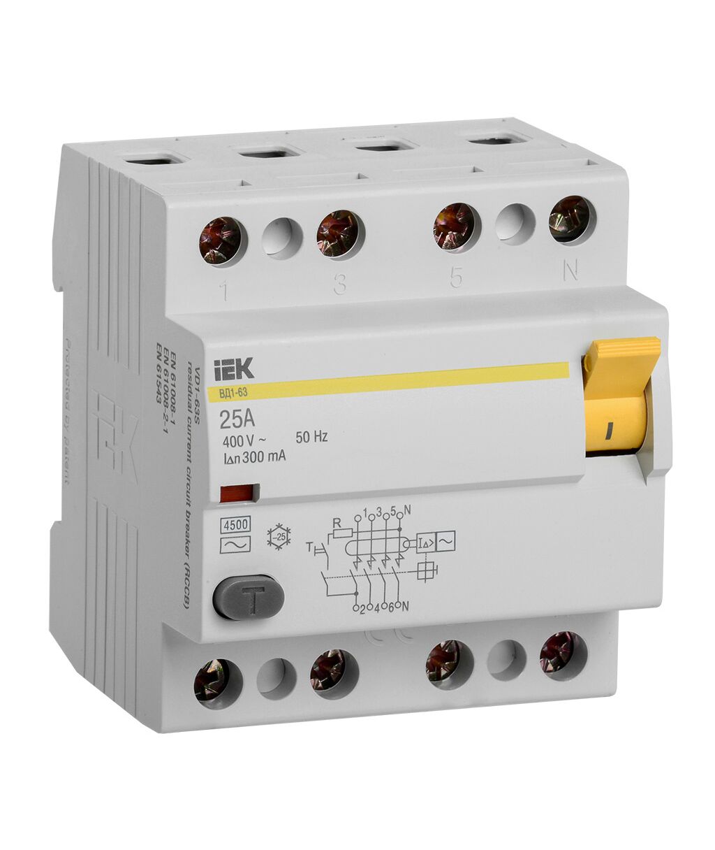 Выключатель дифф.тока IEK MDV10-4-025-300 25A 300мА AC 4П 400В 4мод белый