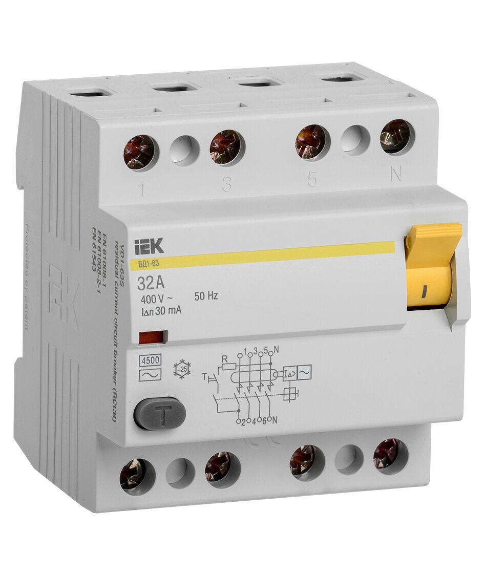Выключатель дифф.тока IEK MDV10-4-032-030 ВД1-63 32A 30мА AC 4П 400В 4мод белый