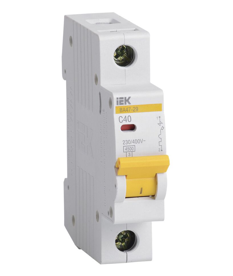 Выключатель автоматический IEK MVA20-1-040-C 40A тип C 4.5kA 1П 230/400В 1мод белый