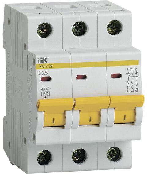 Выключатель автоматический IEK MVA20-3-025-C 25A тип C 4.5kA 3П 400В 3мод белый