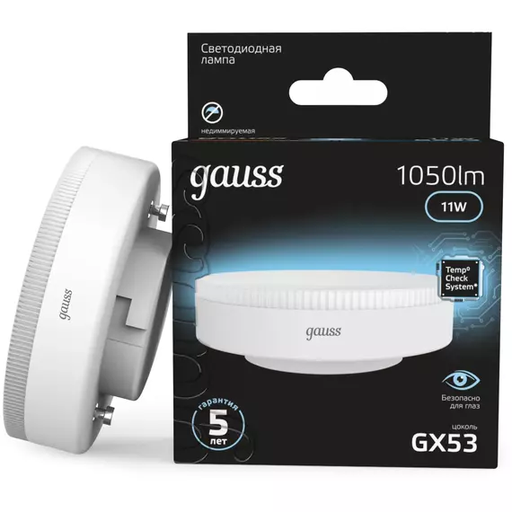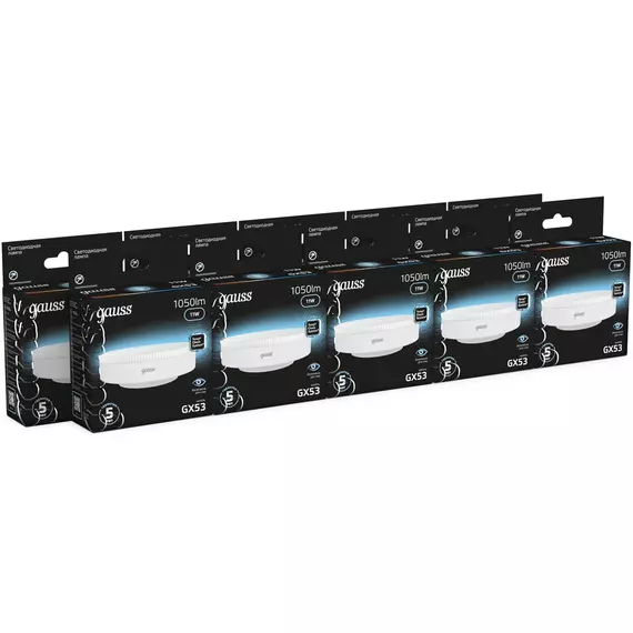 Лампа светодиодная Gauss 11Вт цок.:GX53 таблетка 220B св.свеч.бел.нейт. [108008211]