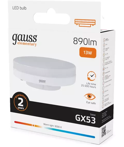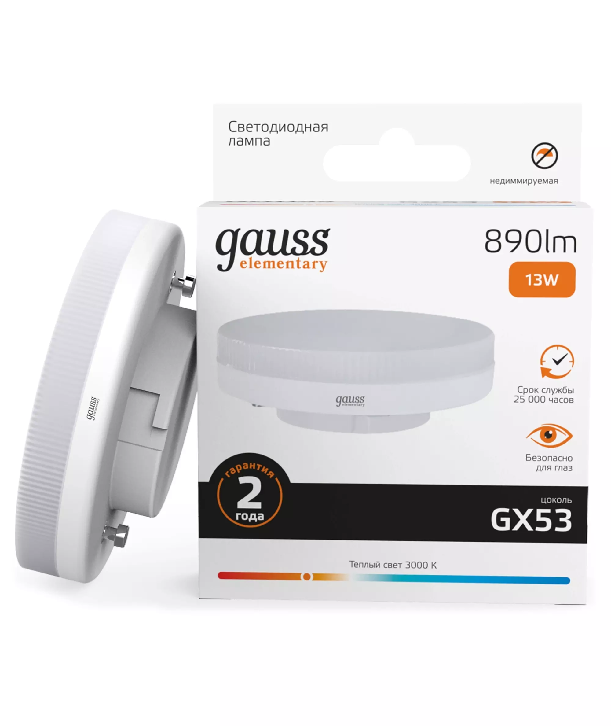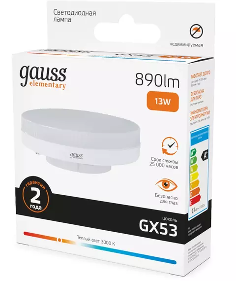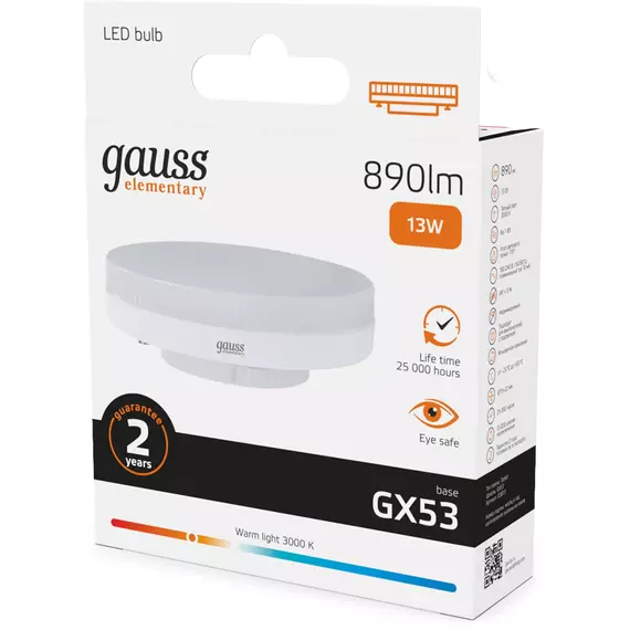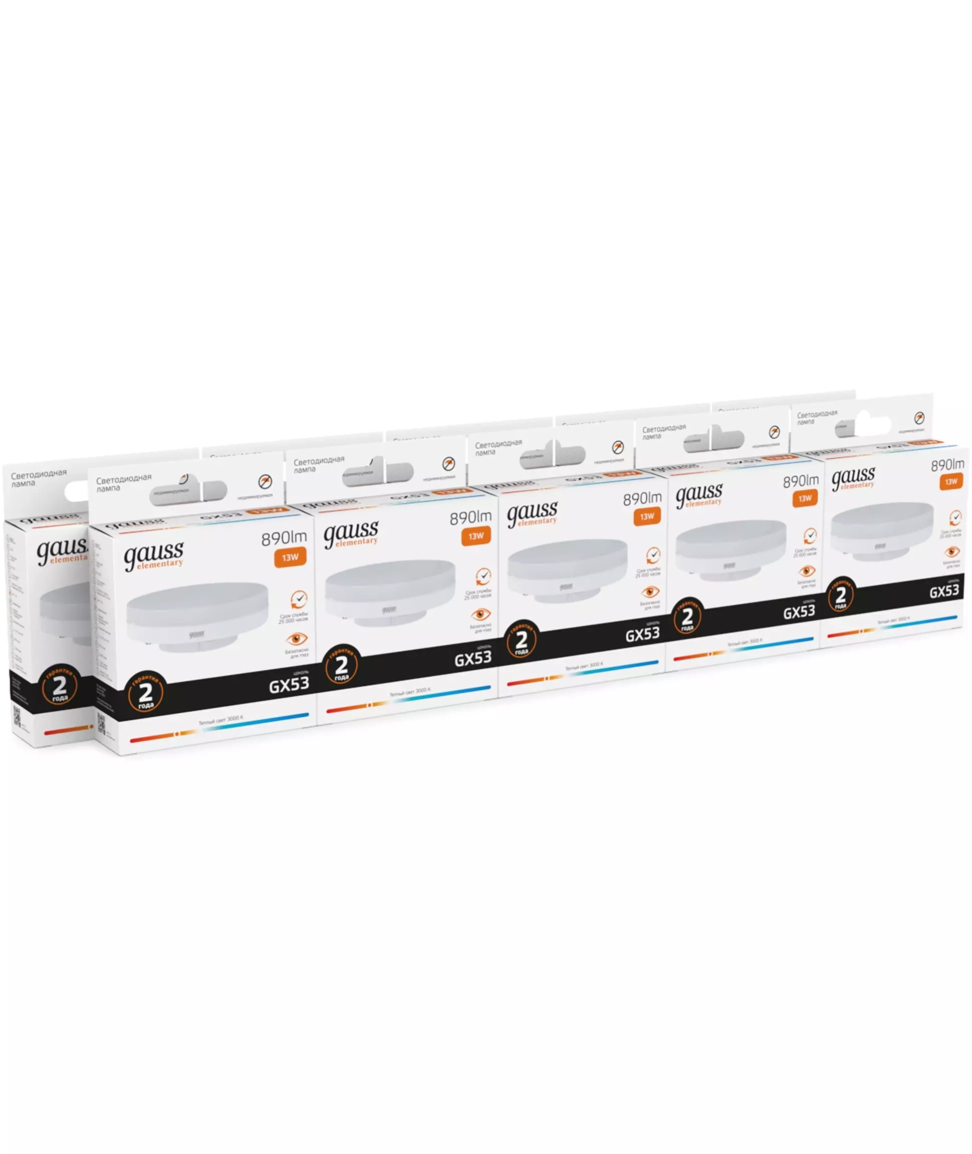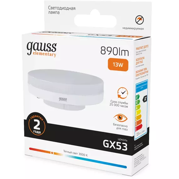 Лампа светодиодная Gauss Elementary 13Вт цок.:GX53 таблетка 220B св.свеч.бел.теп. [83813]