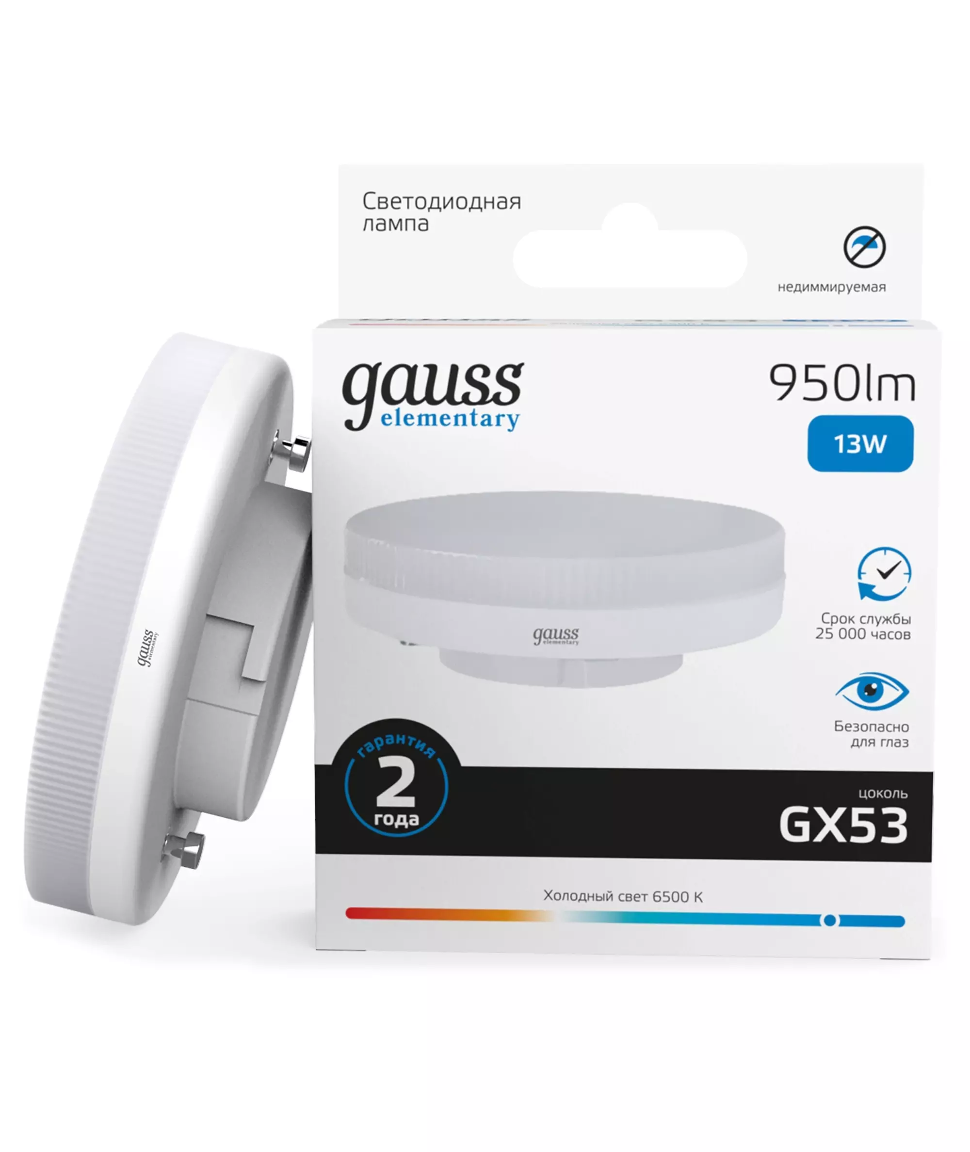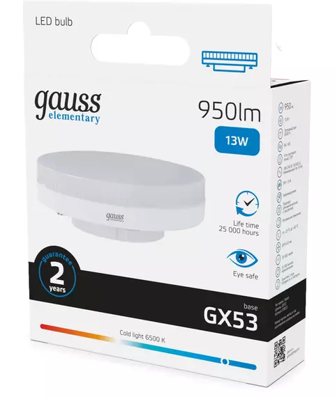 Лампа светодиодная Gauss Elementary 13Вт цок.:GX53 таблетка 220B св.свеч.бел.хол. [83833]