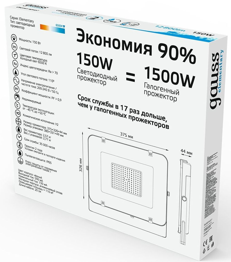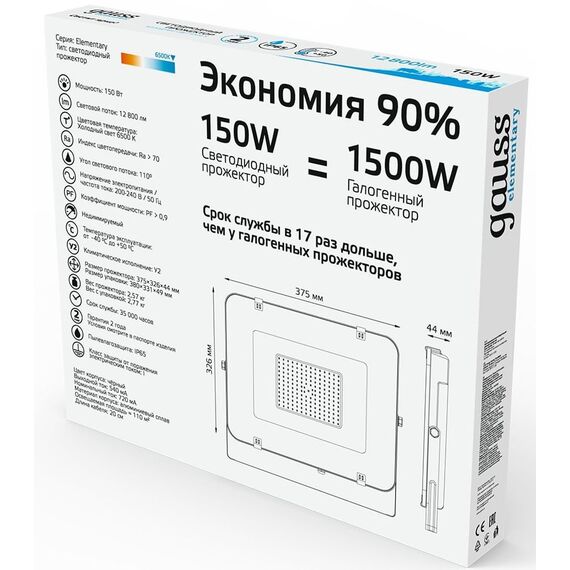 Прожектор уличный светодиодный Gauss Elementary 150Вт черный [691511150]