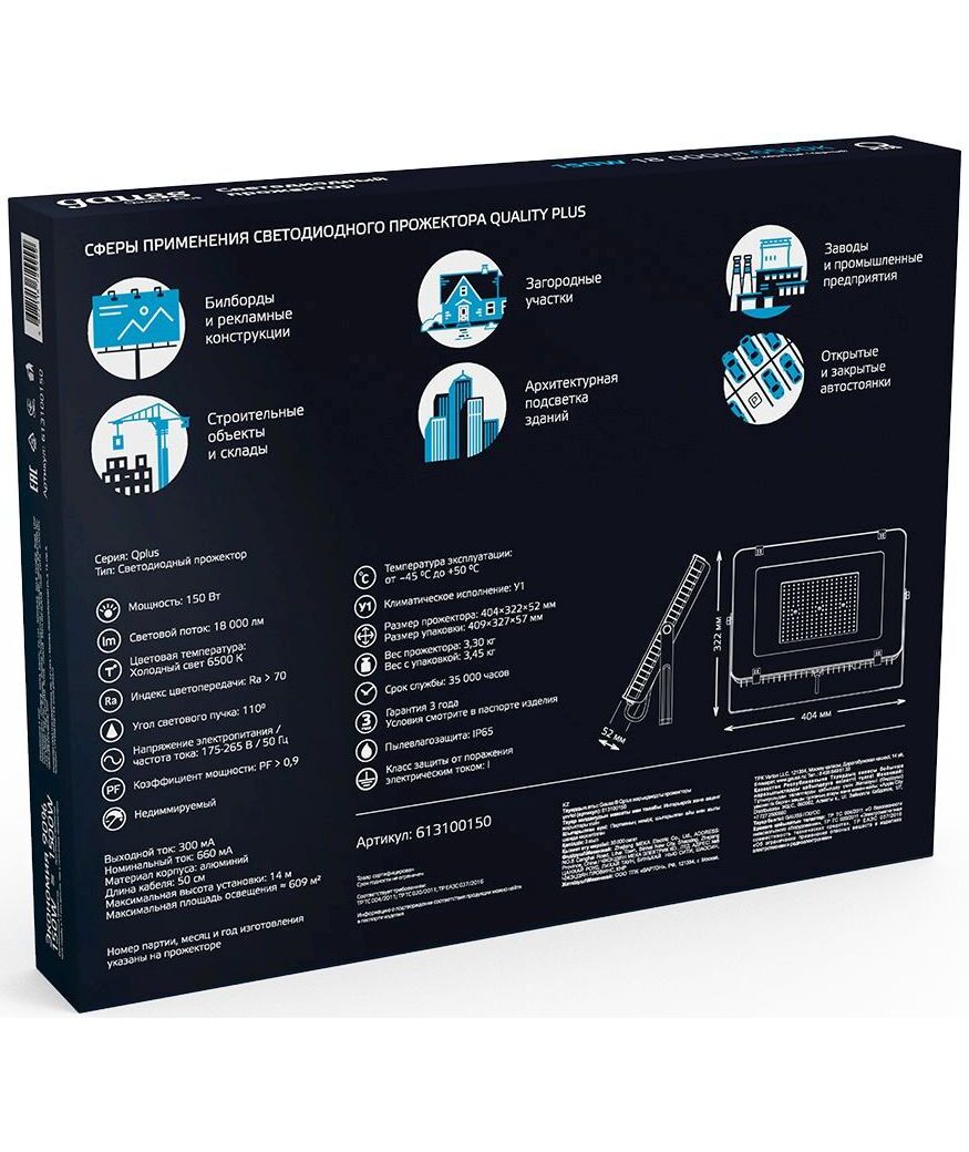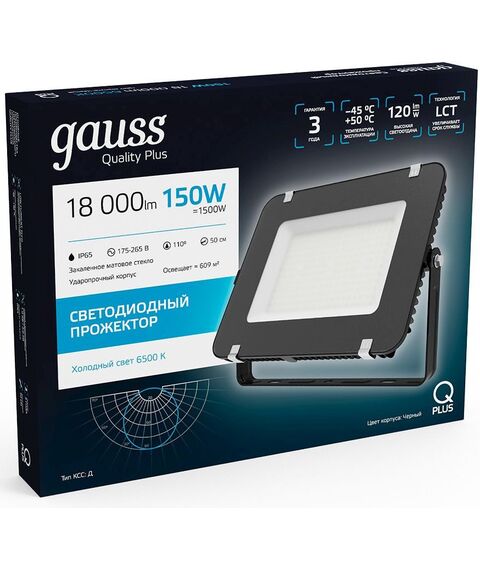 Прожектор уличный светодиодный Gauss Qplus 150Вт черный [613100150]