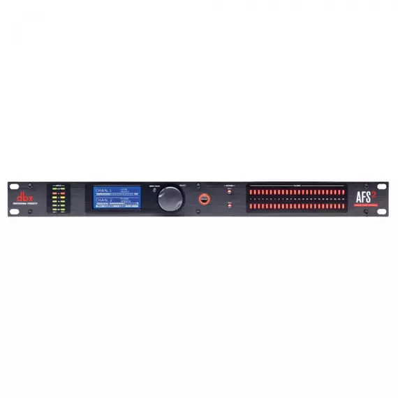 Устройство обеспечивает эффективное уменьшение обратной связи. В данном устройстве компания DBX использует свою запатентованную технологию AFS, которая ранее была доступна только в продуктах класса hi-end. Дополнительно к фильтрам подавления обратной связи, AFS2 также предлагает пользователю выбор разнообразных режимов работы, выбор фиксированного или скользящего фильтра, а также различных типов фильтрации, доступ к которым можно получить посредством удобного и интуитивно понятного пользовательского интерфейса.