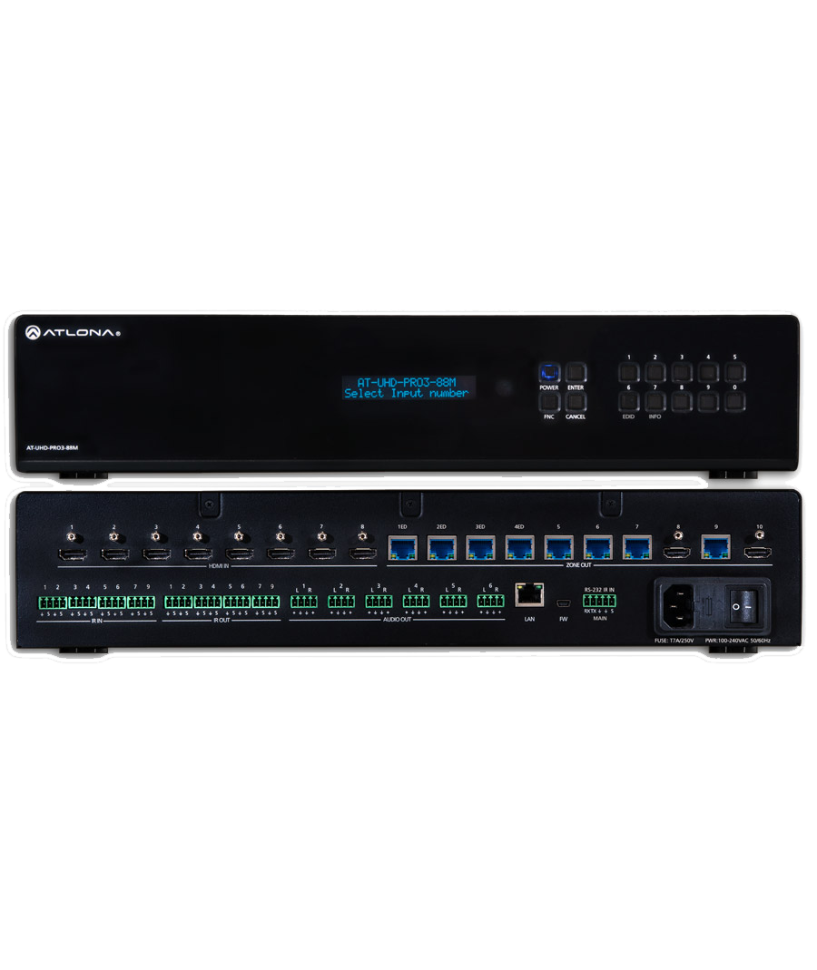Матричный коммутатор Atlona AT-UHD-PRO3-88M с PoE 4K/UHD 8х8 HDMI на HDBaseT