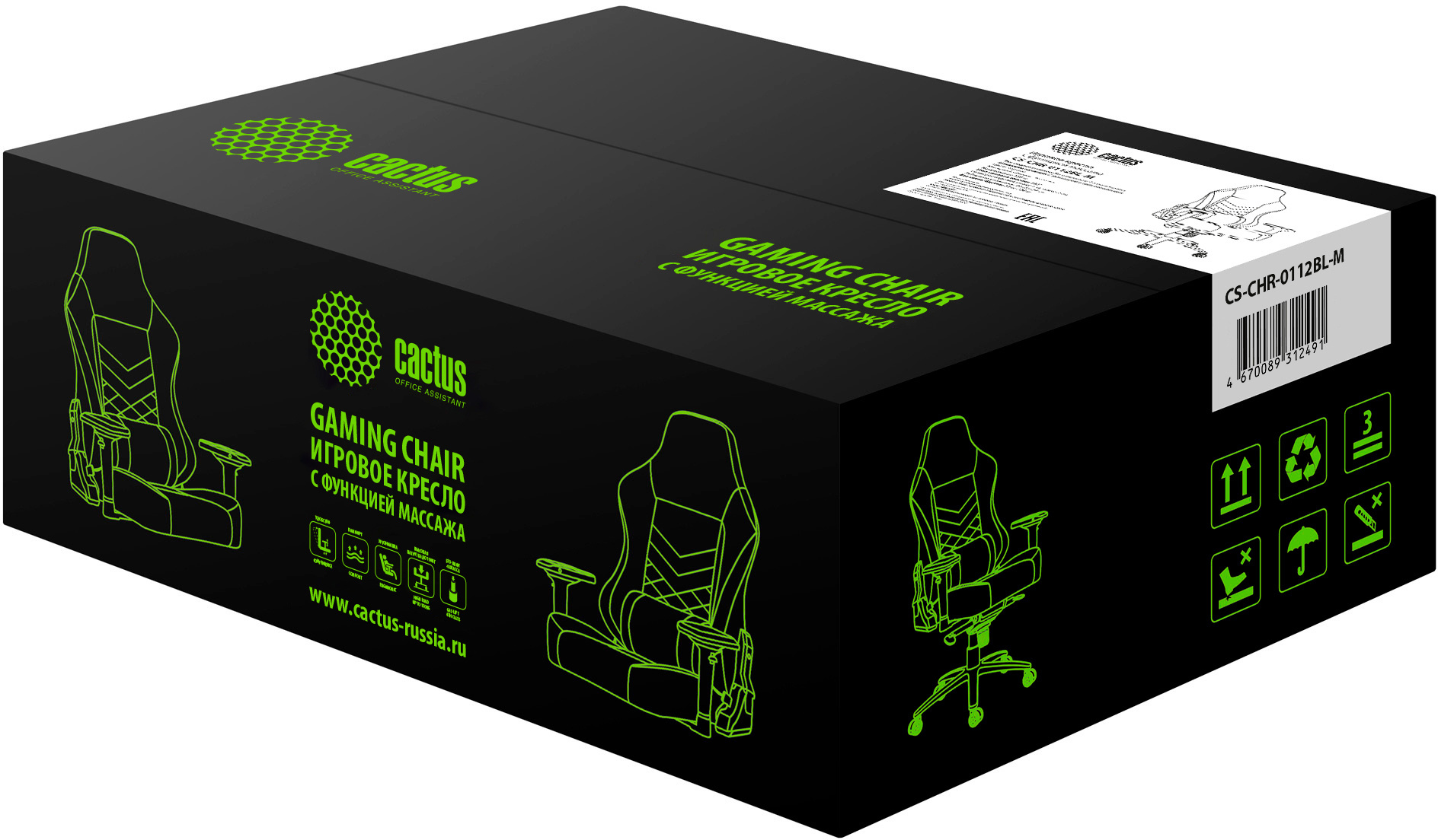 Кресло игровое Cactus CS-CHR-0112BL-M с вибромассажем черный эко.кожа с подголов. крестов. черный