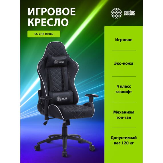 Кресло игровое Cactus CS-CHR-030BLS черный/серебристый эко.кожа с подголов. крестов. сталь