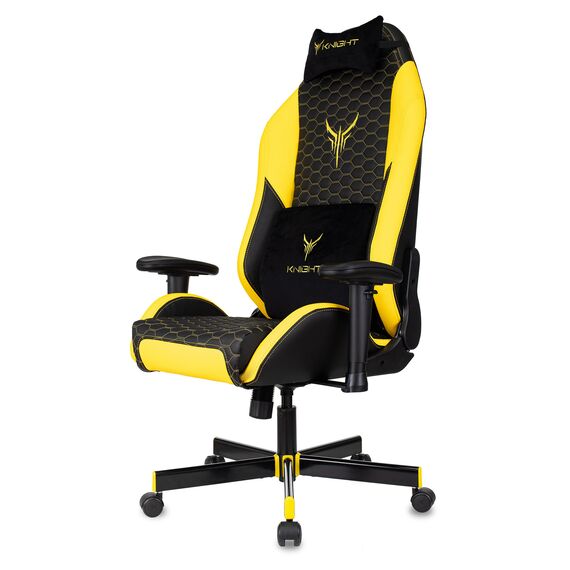 Кресло игровое Knight KNIGHT NEON YELLOW черный/желтый соты эко.кожа с подголов. крестов. металл