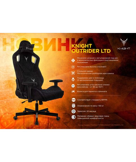 Кресло игровое Knight KNIGHT OUTRIDER LTD черный Light-20 с подголов. крестов. металл
