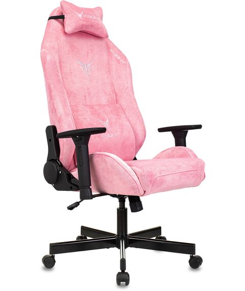 Кресло игровое Knight N1 Fabric розовый Velvet 36 с подголов. крестов. металл [KNIGHT N1 PINK]