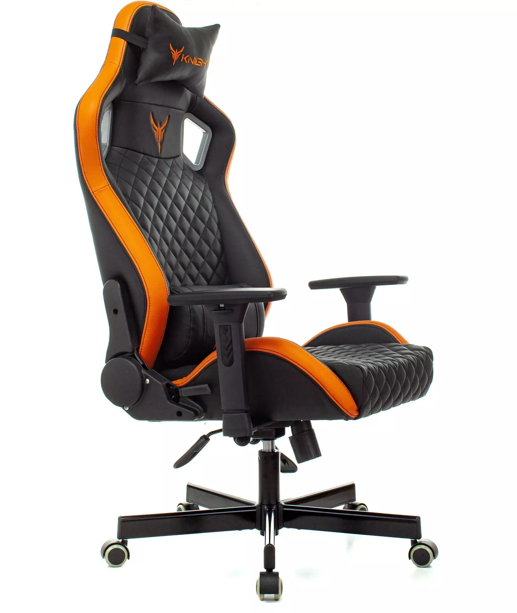 Кресло игровое Knight Outrider BO черный/оранжевый ромбик эко.кожа с подголов. крестов. металл
