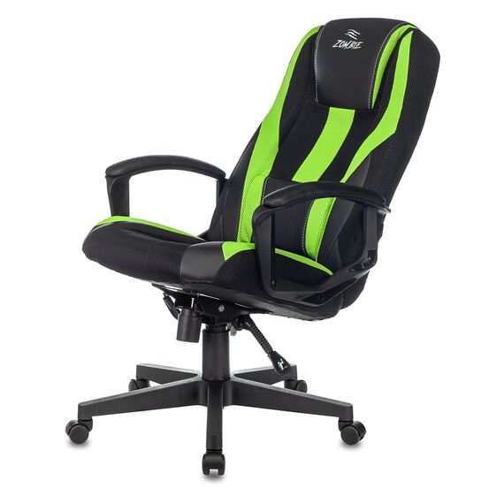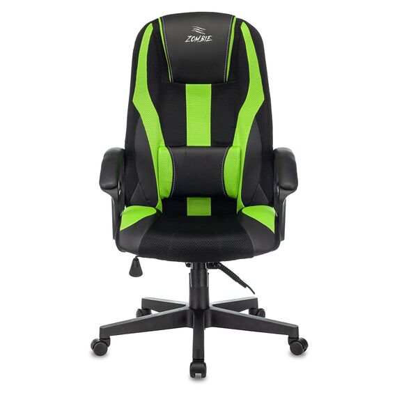 Кресло игровое Zombie 9 GREEN черный/салатовый ткань/эко.кожа крестов. пластик