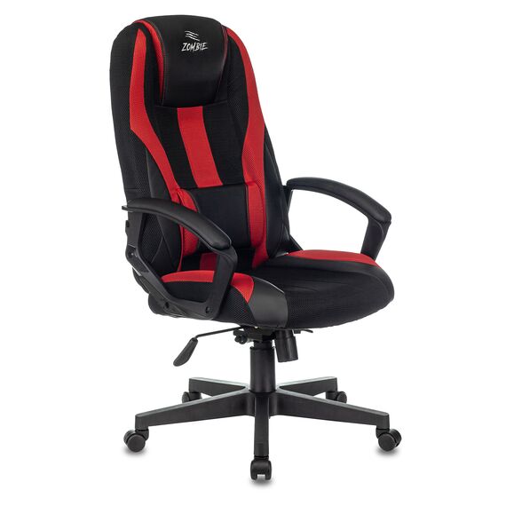 Кресло игровое Zombie 9 черный/красный ткань/эко.кожа крестов. пластик [ZOMBIE 9 RED]
