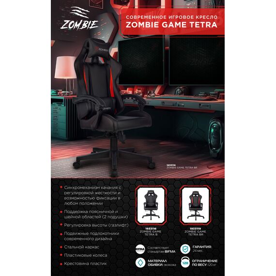 Кресло игровое Zombie GAME TETRA BR черный/красный эко.кожа крестов. пластик