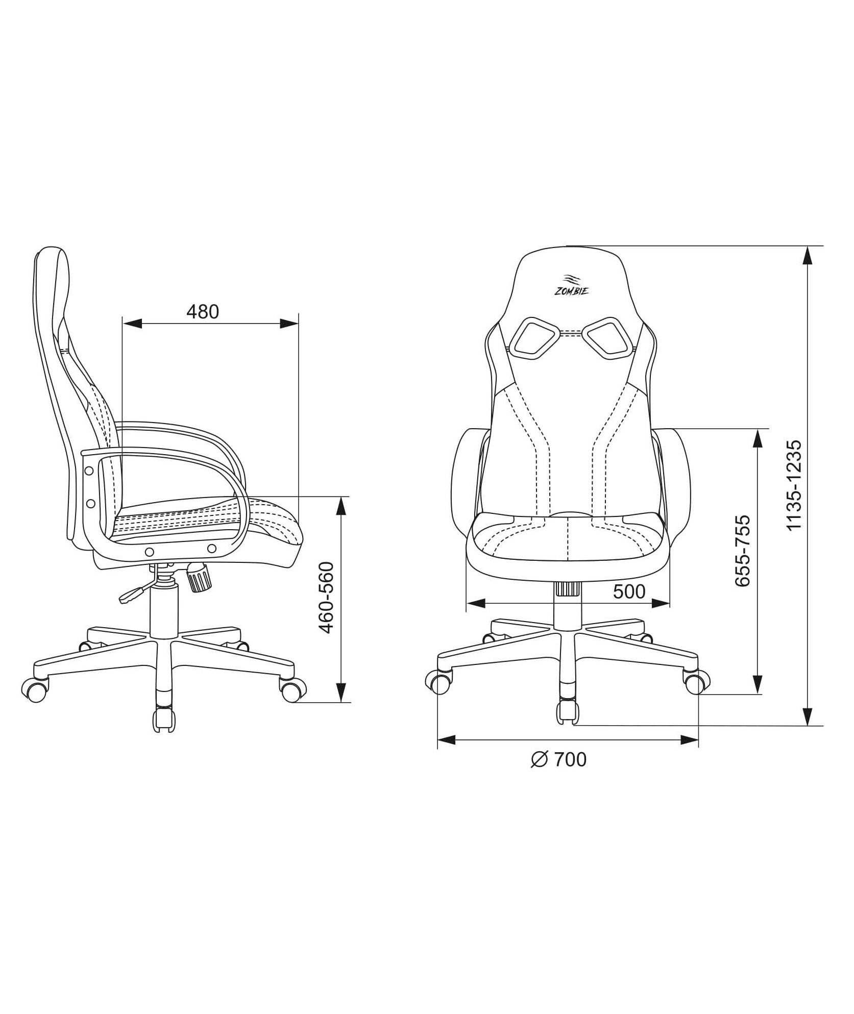 | Высота с подлокотниками MIN | 655 мм |