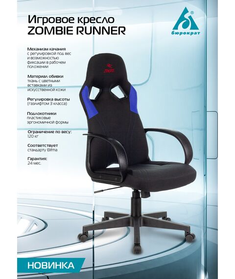 Кресло игровое Zombie RUNNER RED черный/красный ткань/эко.кожа крестов. пластик