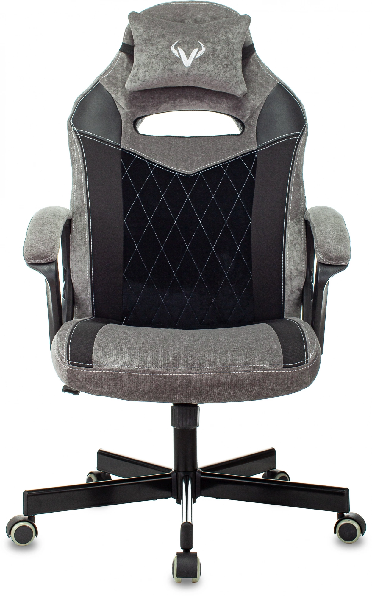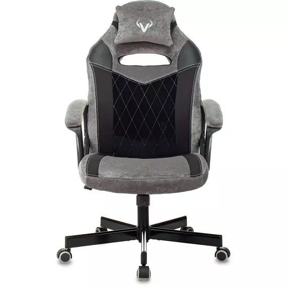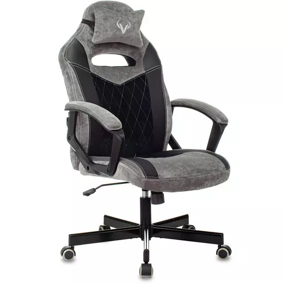 Кресло игровое Zombie VIKING 6 KNIGHT B Fabric серый/черный с подголов. крестов. металл