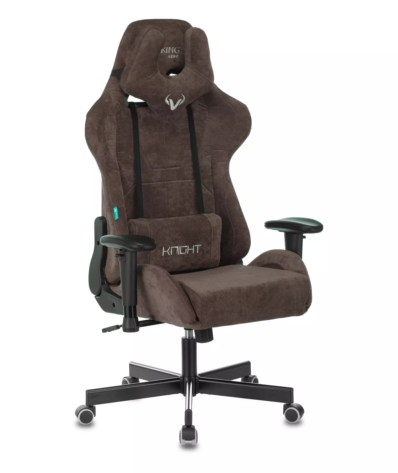 Кресло игровое Zombie VIKING KNIGHT Fabric темно-коричневый Light-10 с подголов. крестов. металл [VIKING KNIGHT LT10]