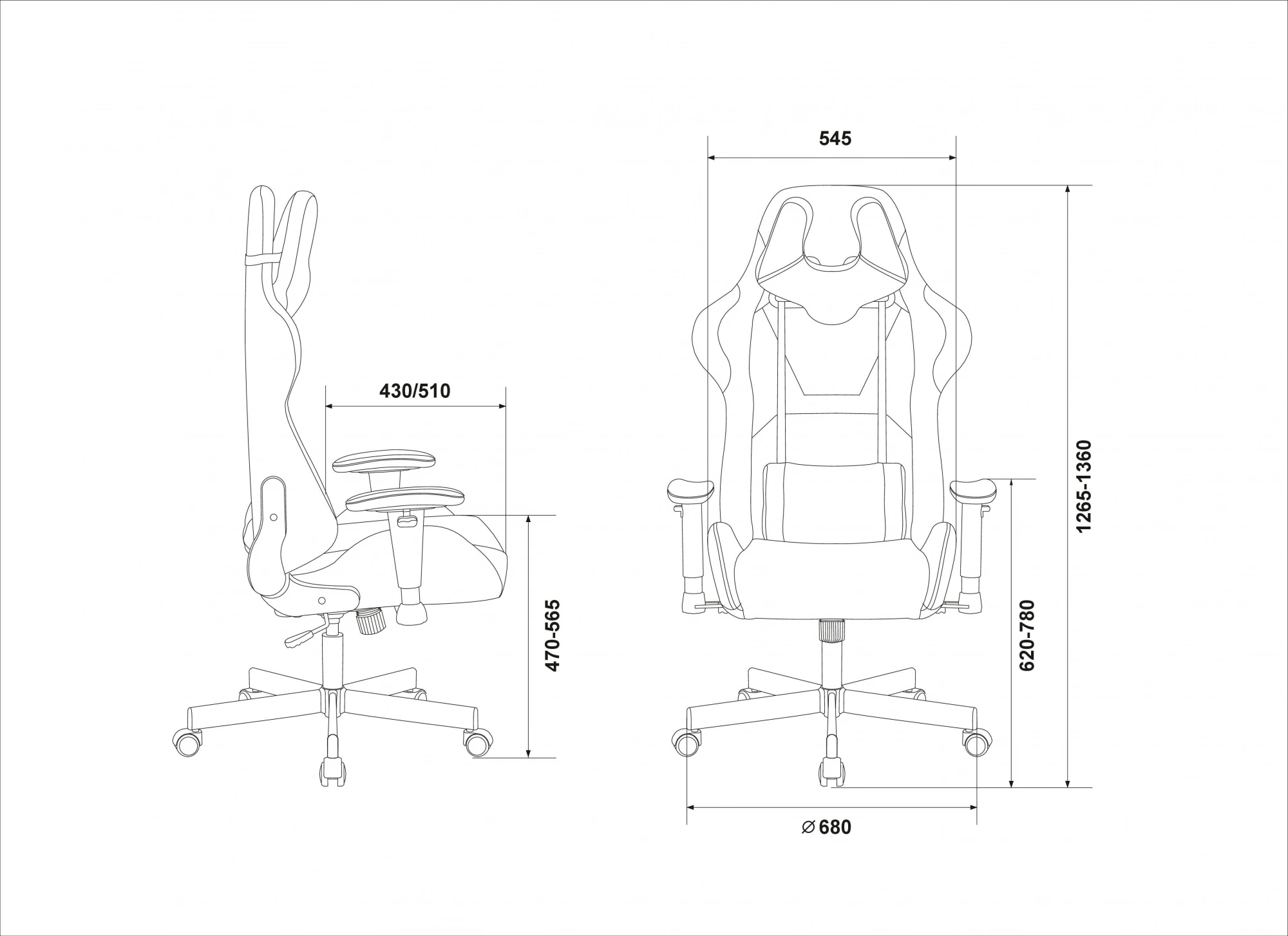 | Высота кресла / стула MIN | 1265 мм |