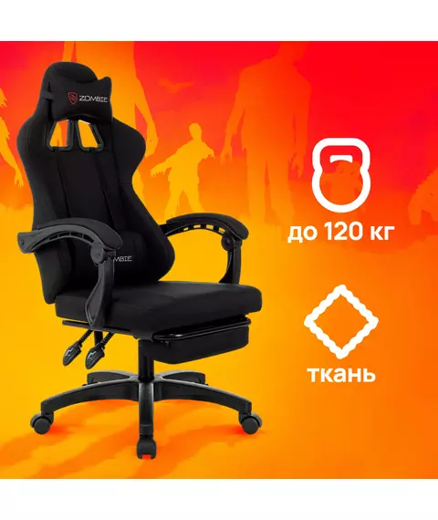 Кресло игровое Zombie Weaver B черный с подголов. крестов. пластик подст.для ног пластик черный