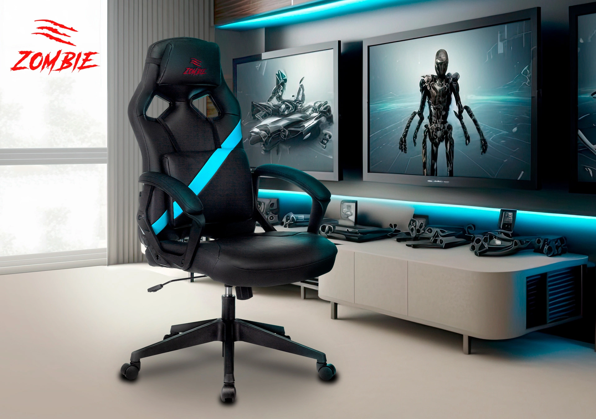 Кресло игровое Zombie ZOMBIE DRIVER BLACK черный эко.кожа с подголов. крестов. пластик