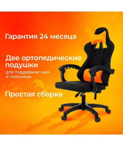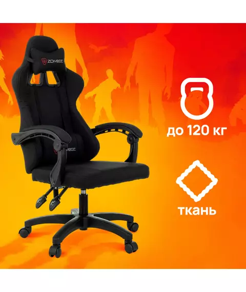 Кресло игровое Zombie ZOMBIE RUDGER BLACK черный с подголов. крестов. пластик