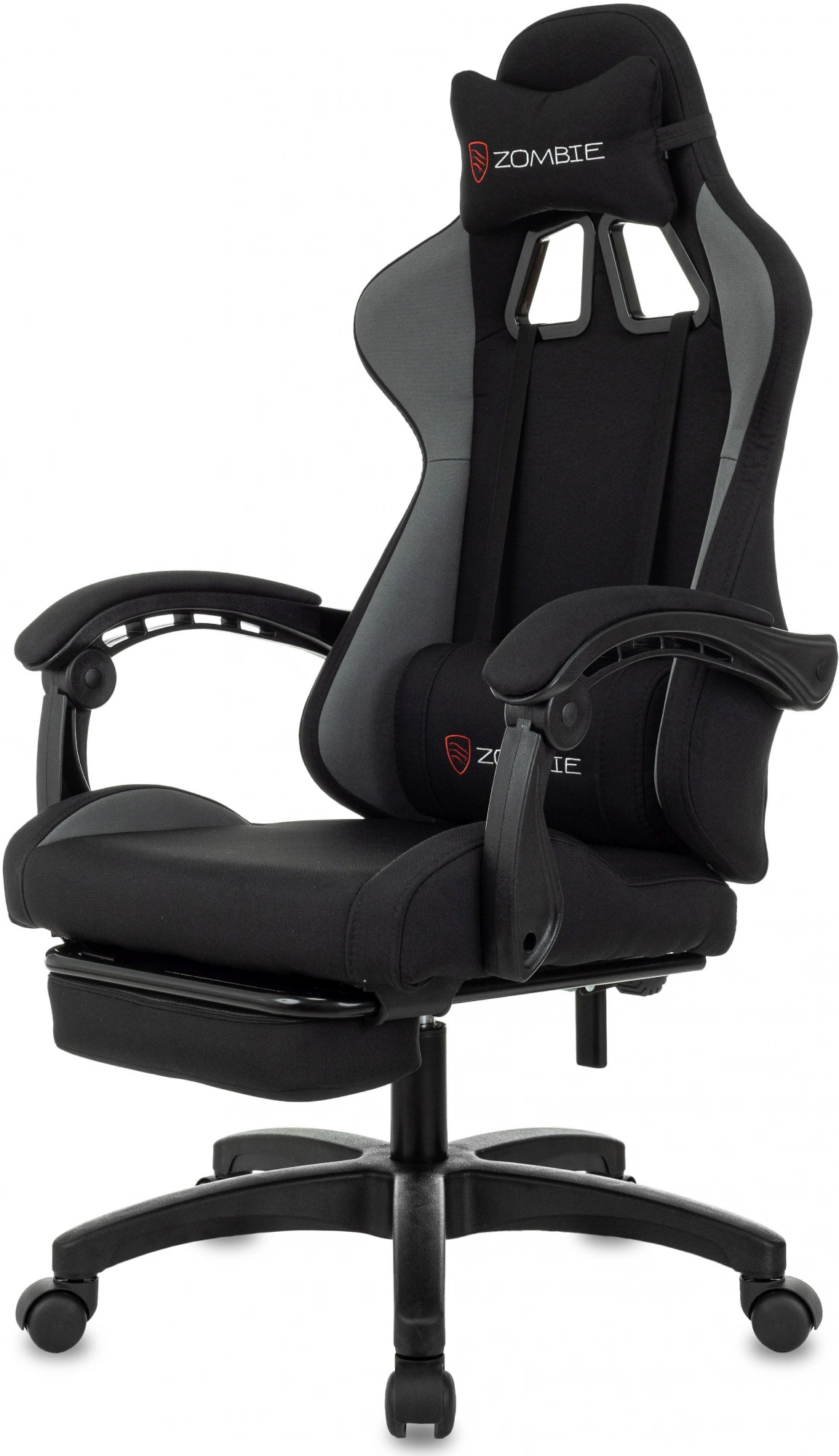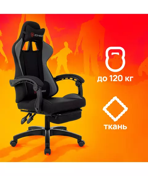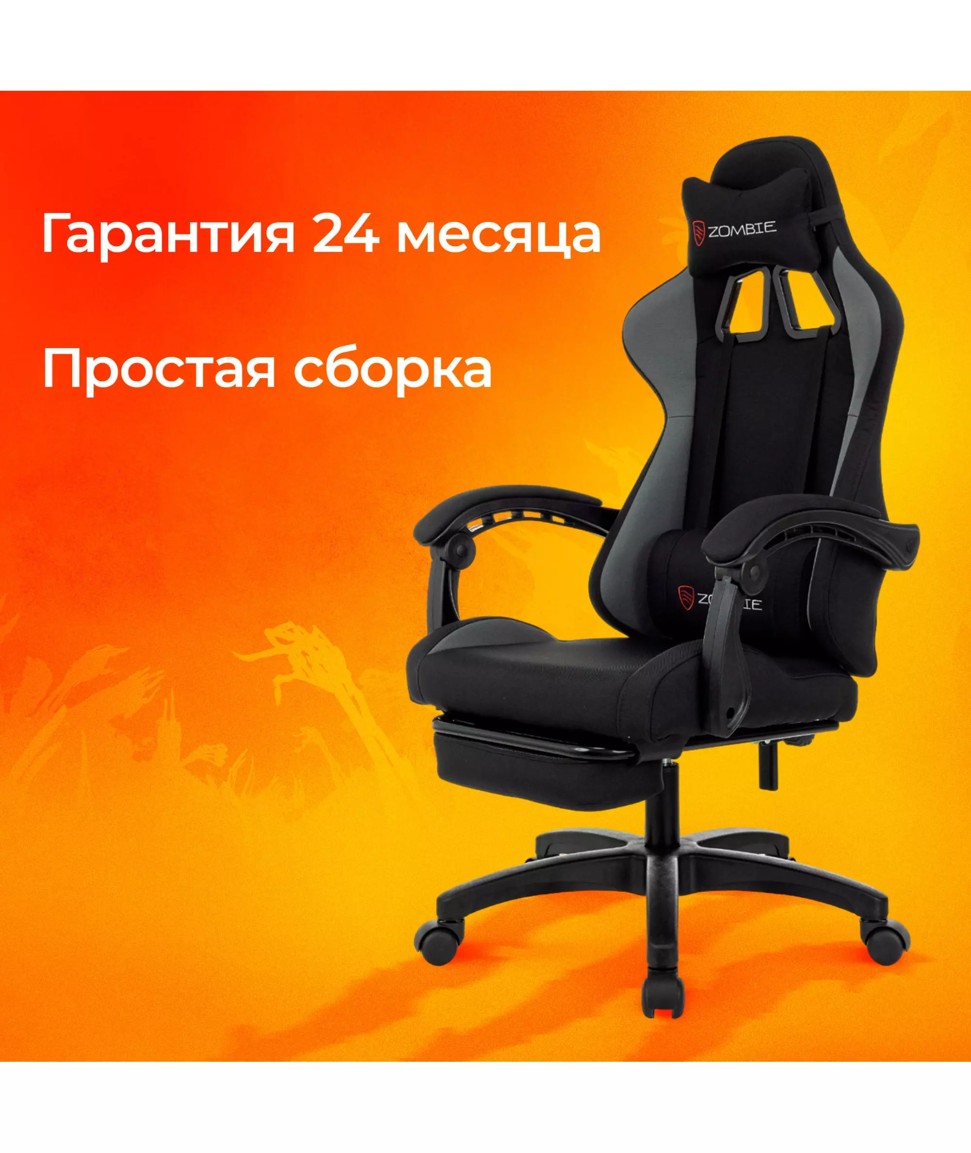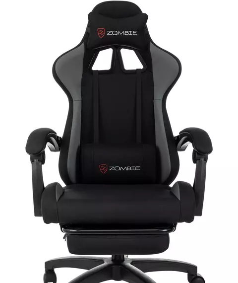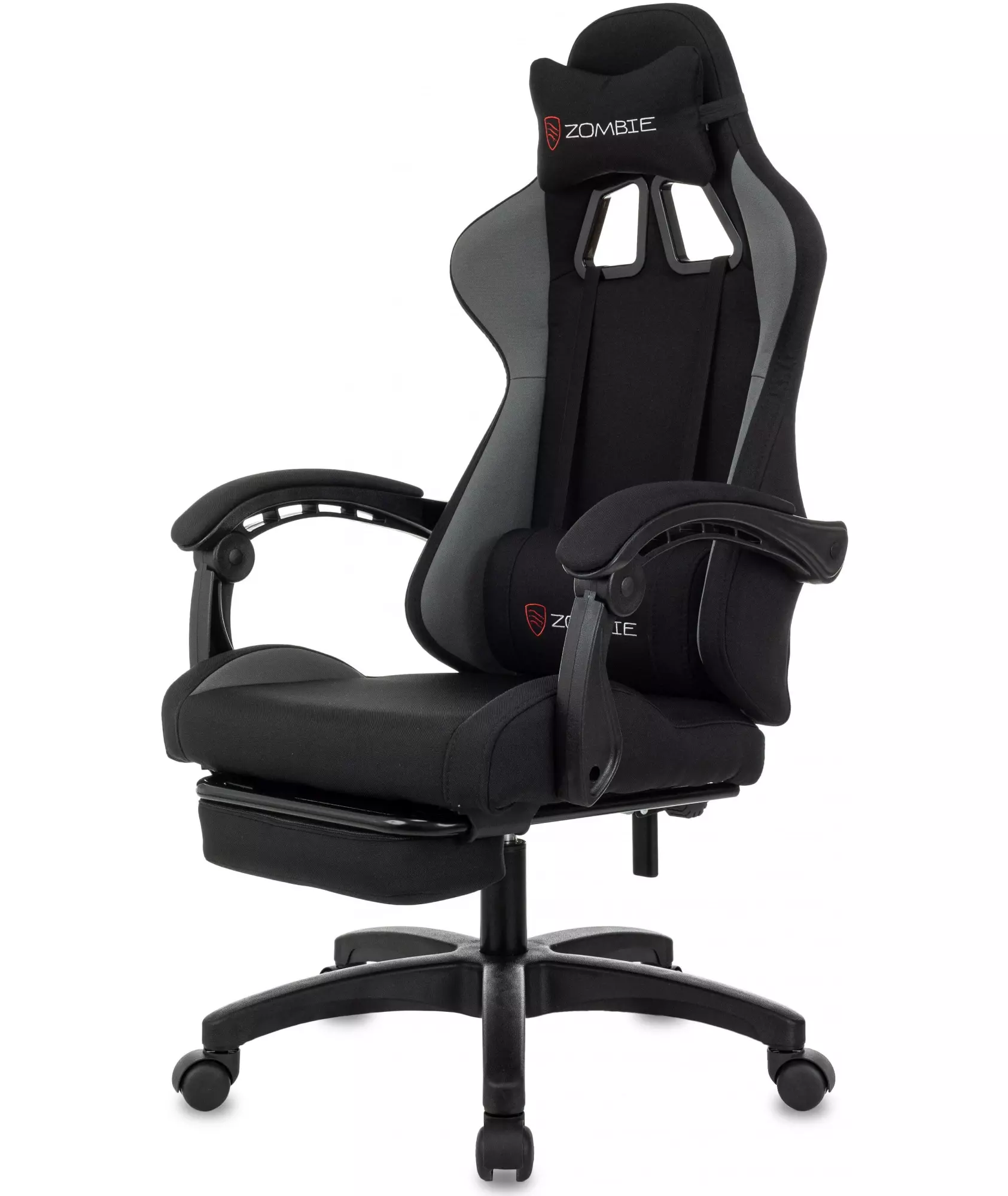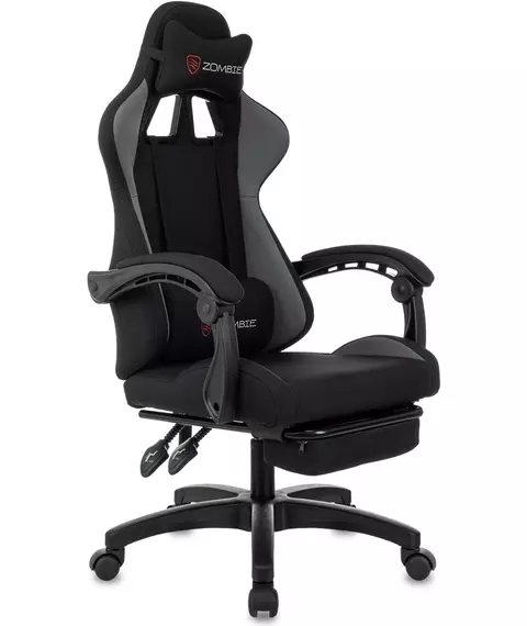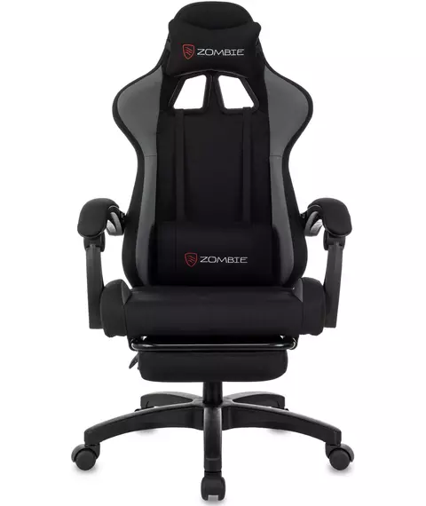 Кресло игровое Zombie SHADOW G черный/серый с подголов. крестов. пластик подст.для ног пластик черный