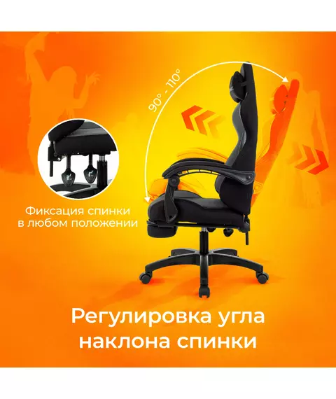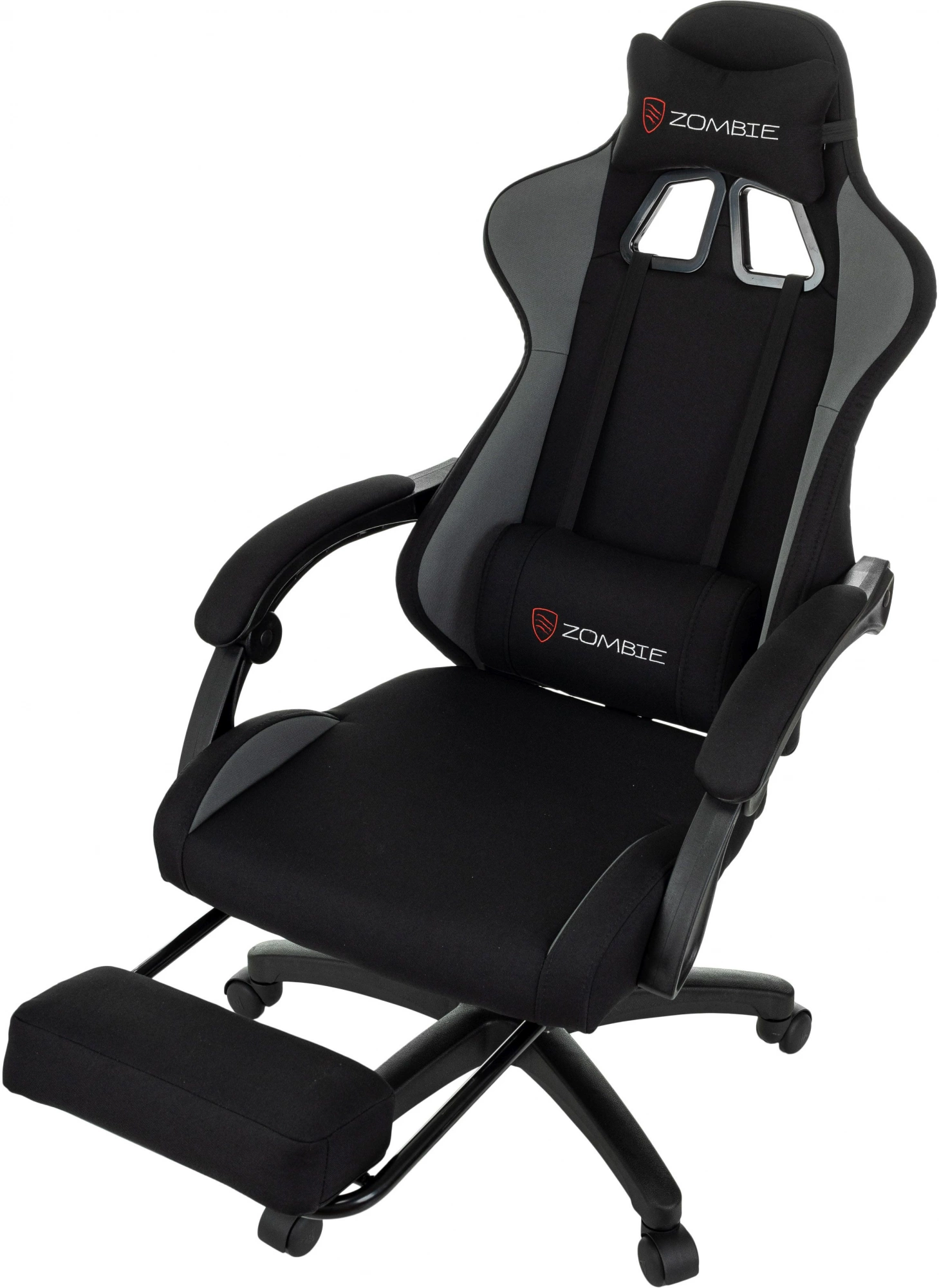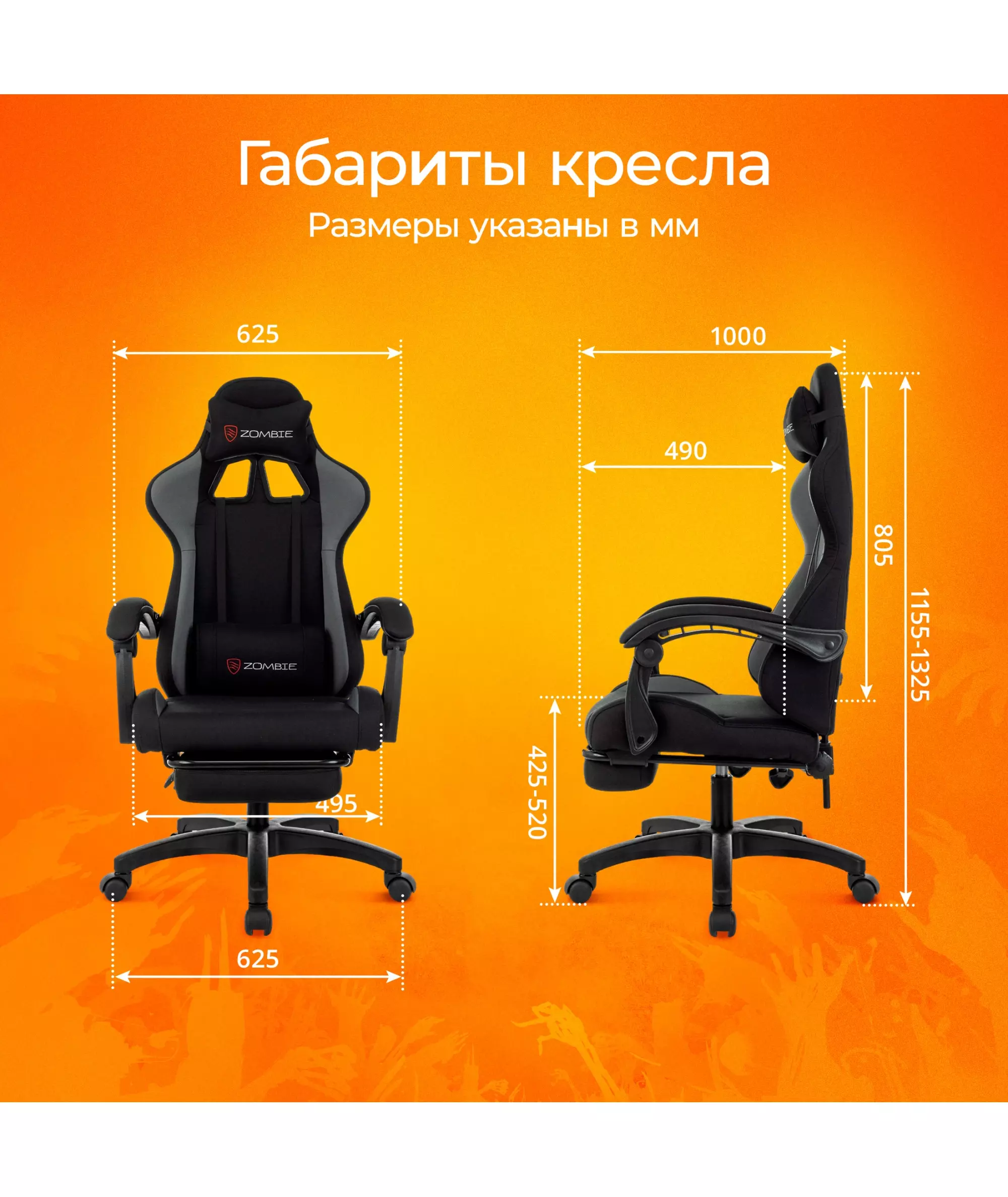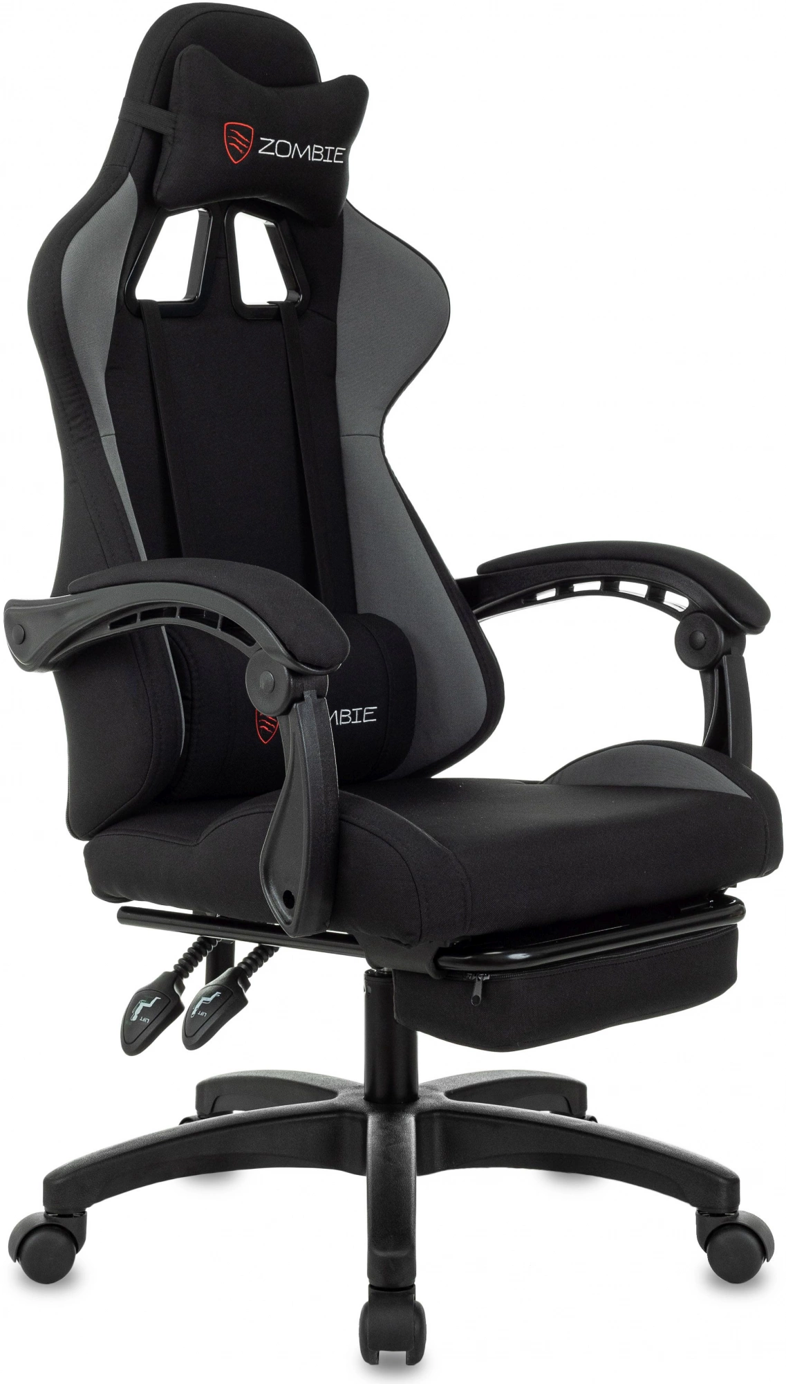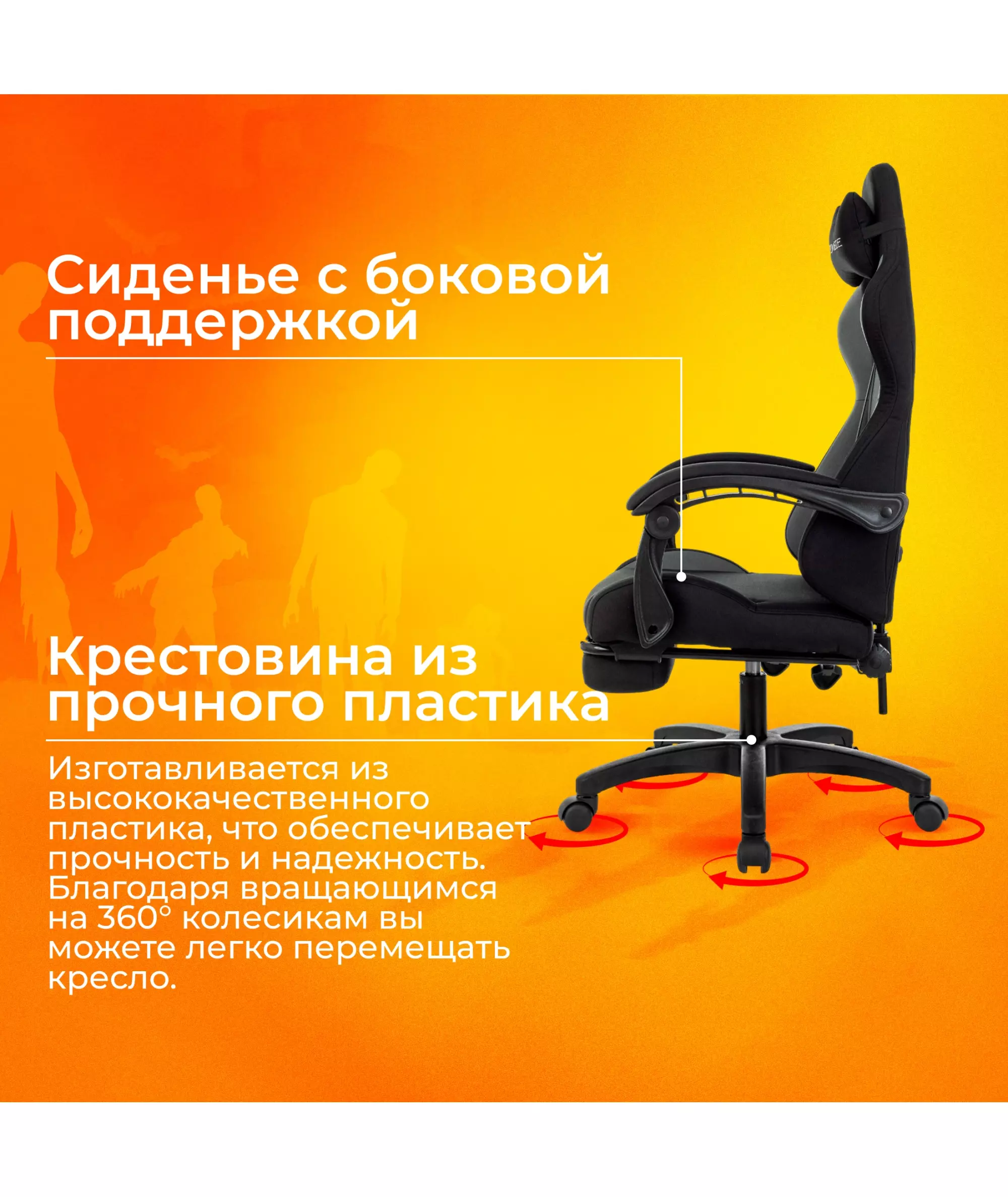 Кресло игровое Zombie SHADOW G черный/серый с подголов. крестов. пластик подст.для ног пластик черный