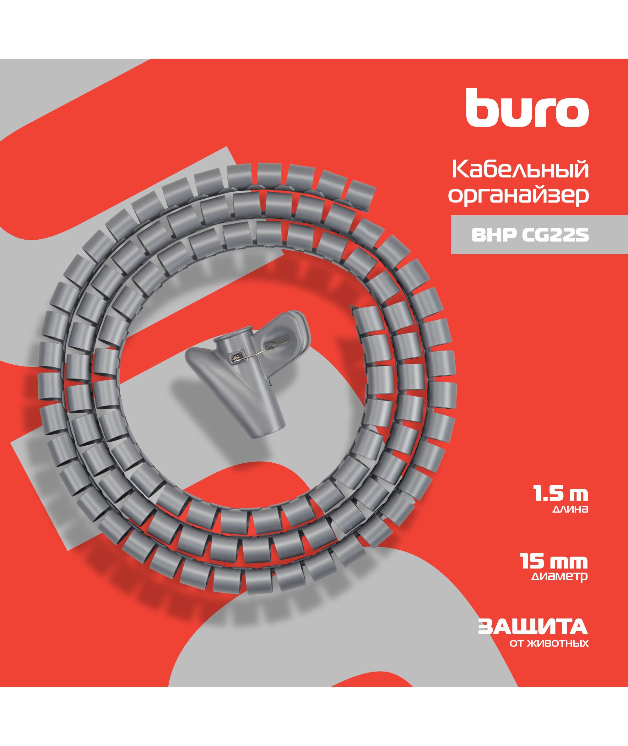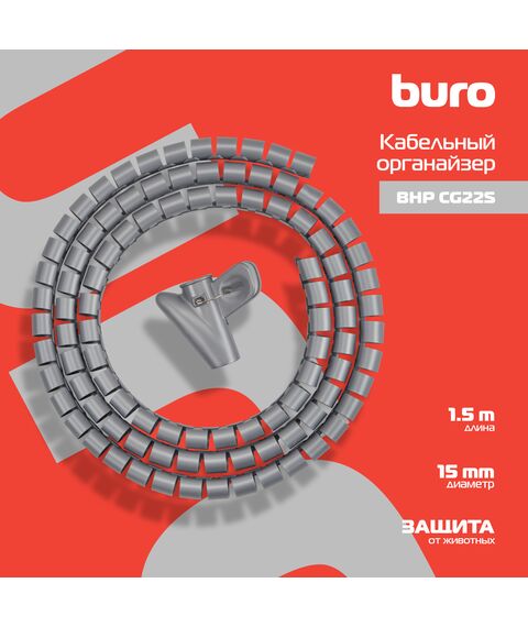 Кабельный органайзер BURO BHP CG155S Spiral Hose 15x1500mm Silver