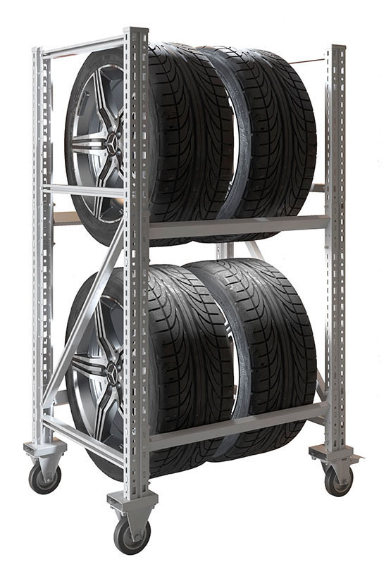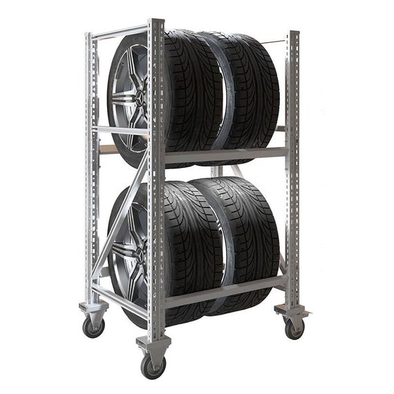 | Особенности | Передвижной стеллаж предназначен для удобного и безопасного хранения колес в гаражах, автосервисах и СТО. Для хранения четырех колёс от R14 до R20 (max ширина одного колеса 295 мм). Возможность регулировки ярусов хранения, в зависимости от размеров колес. |
